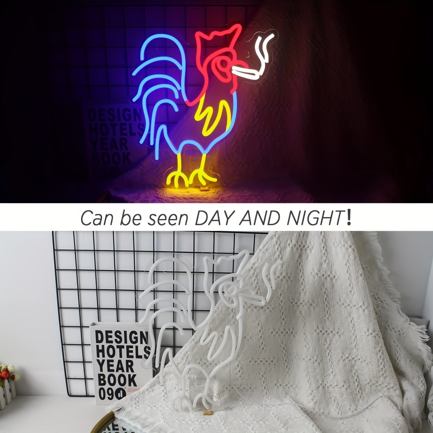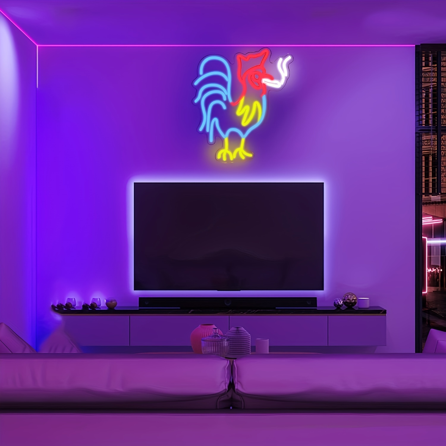 1pc Rooster Neon Light Sign, Red Blue Led Sign, Wall Decor, Animal Light, Room Decor, Birthday Party, Gift Decor
