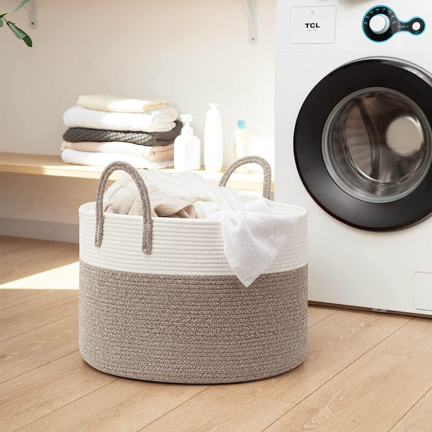 This super large basket has acapacity of around 65L. The generously-sized handles allow for convenient and comfortable carrying of heavy loads around the house.
