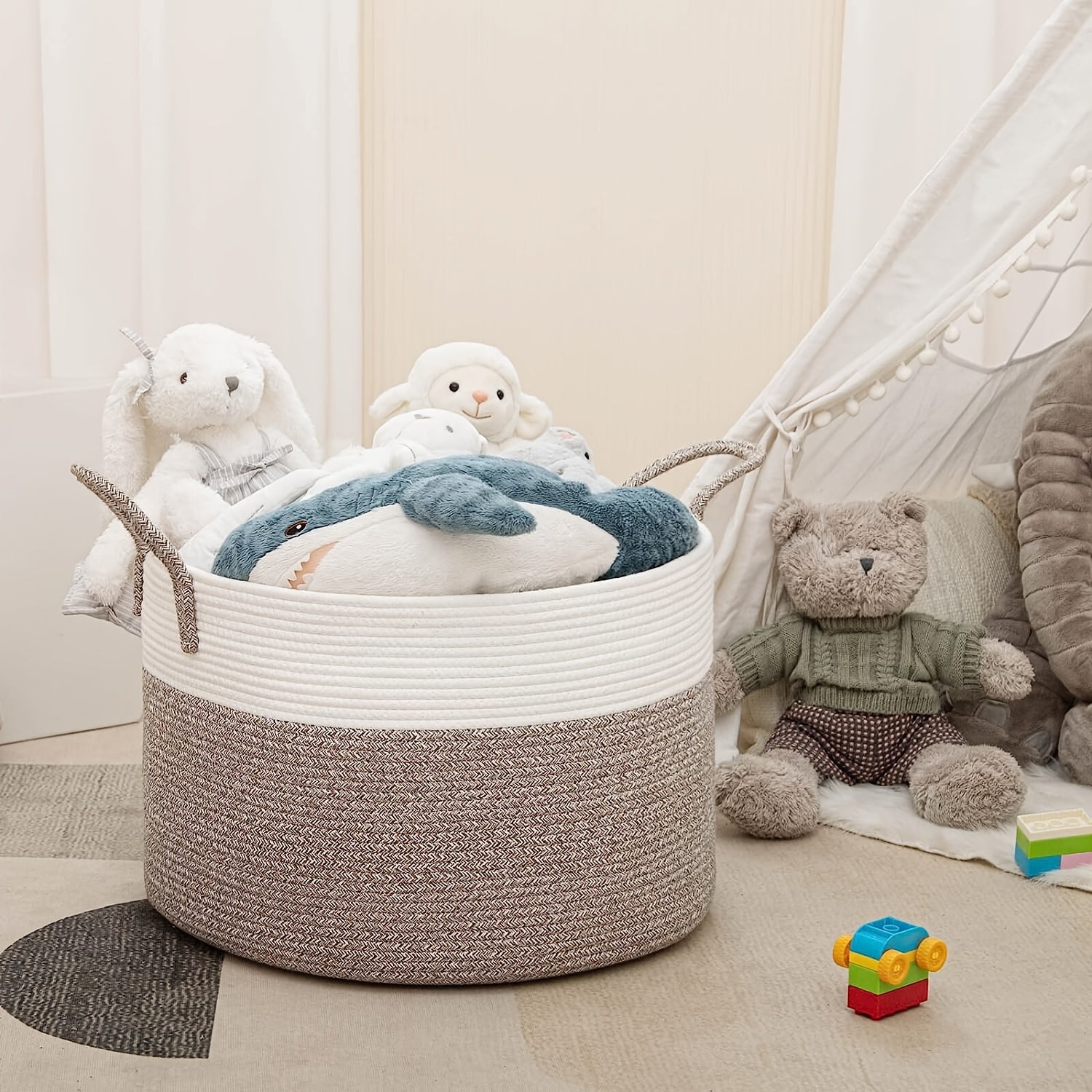 There’s nothing worse than unattractivenursery organizersthat don’t match thehome decoryou’ve spent so much time perfecting. Thankfully, our gorgeous two-tone rope baskets come in handsome neutral colors that compliment virtually any style.