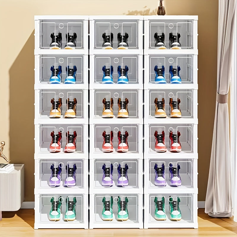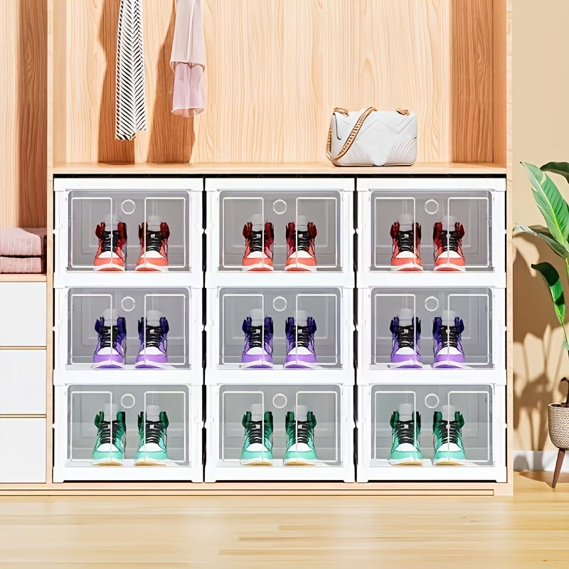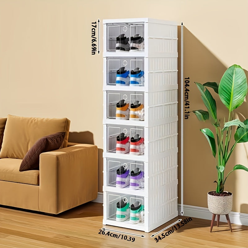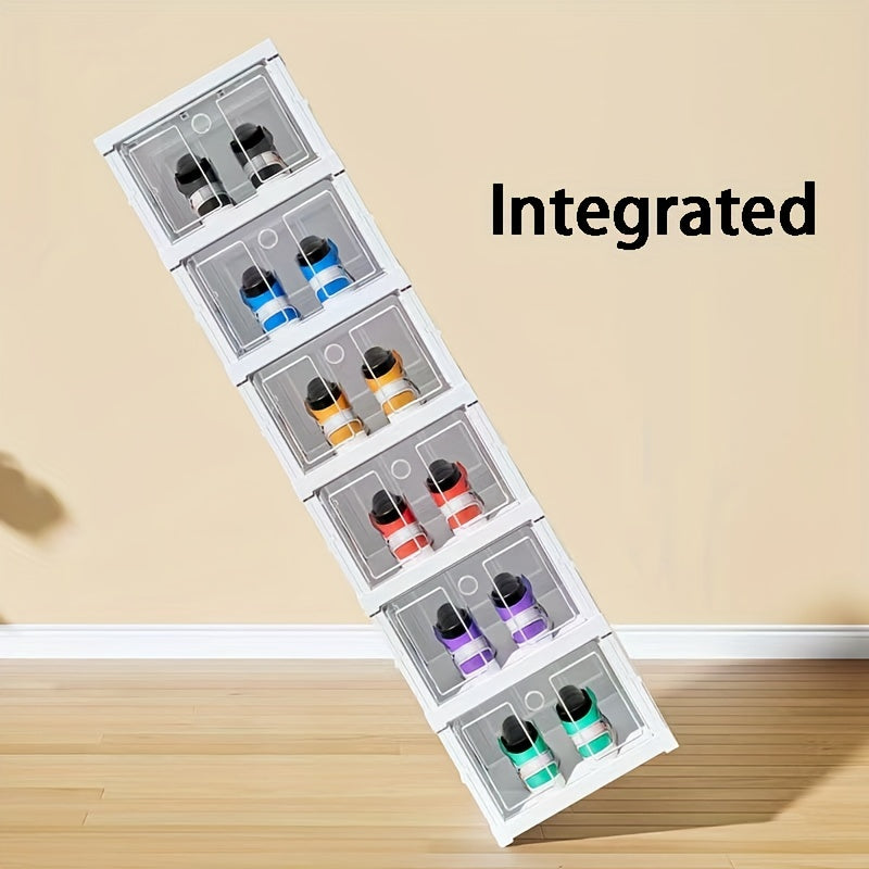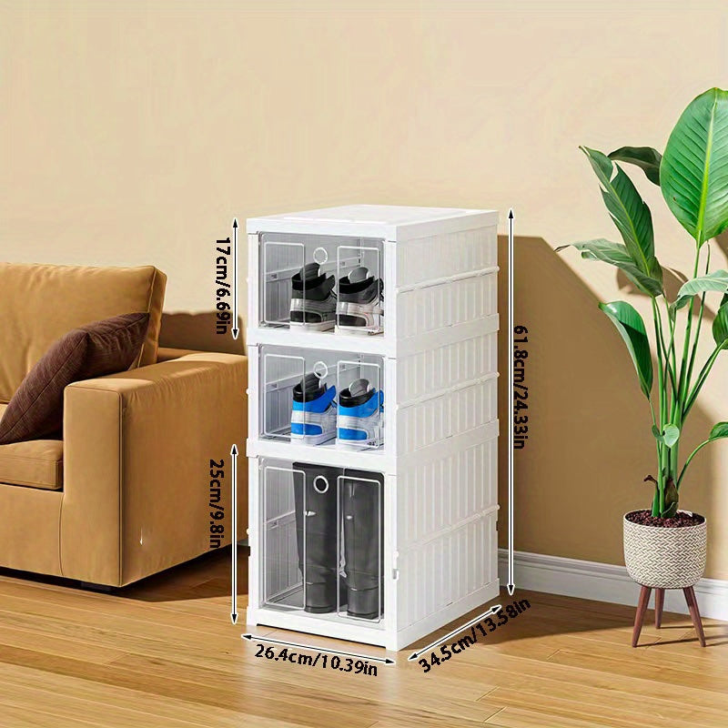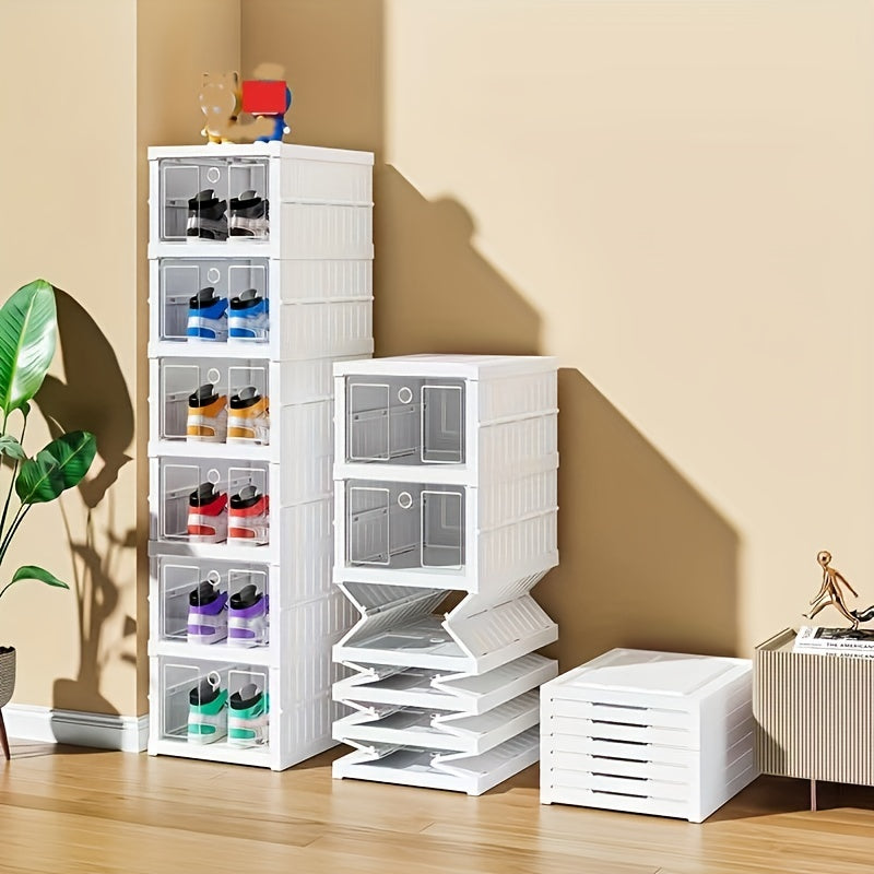 1pc Stackable Folding Shoe Box - Free-Installation Shoe Storage Cabinet for Men and Women - Plastic Sneaker Organizer with Foldable Design