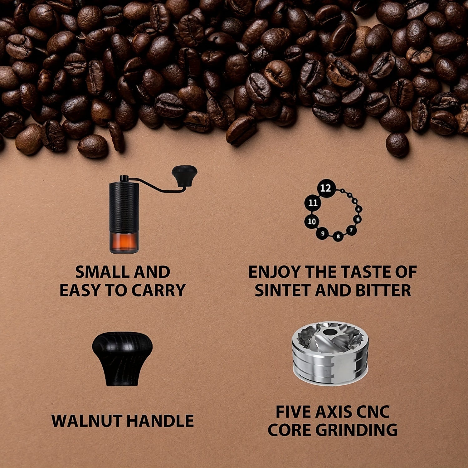 Self-grind and drink, enjoy the romance of coffee.