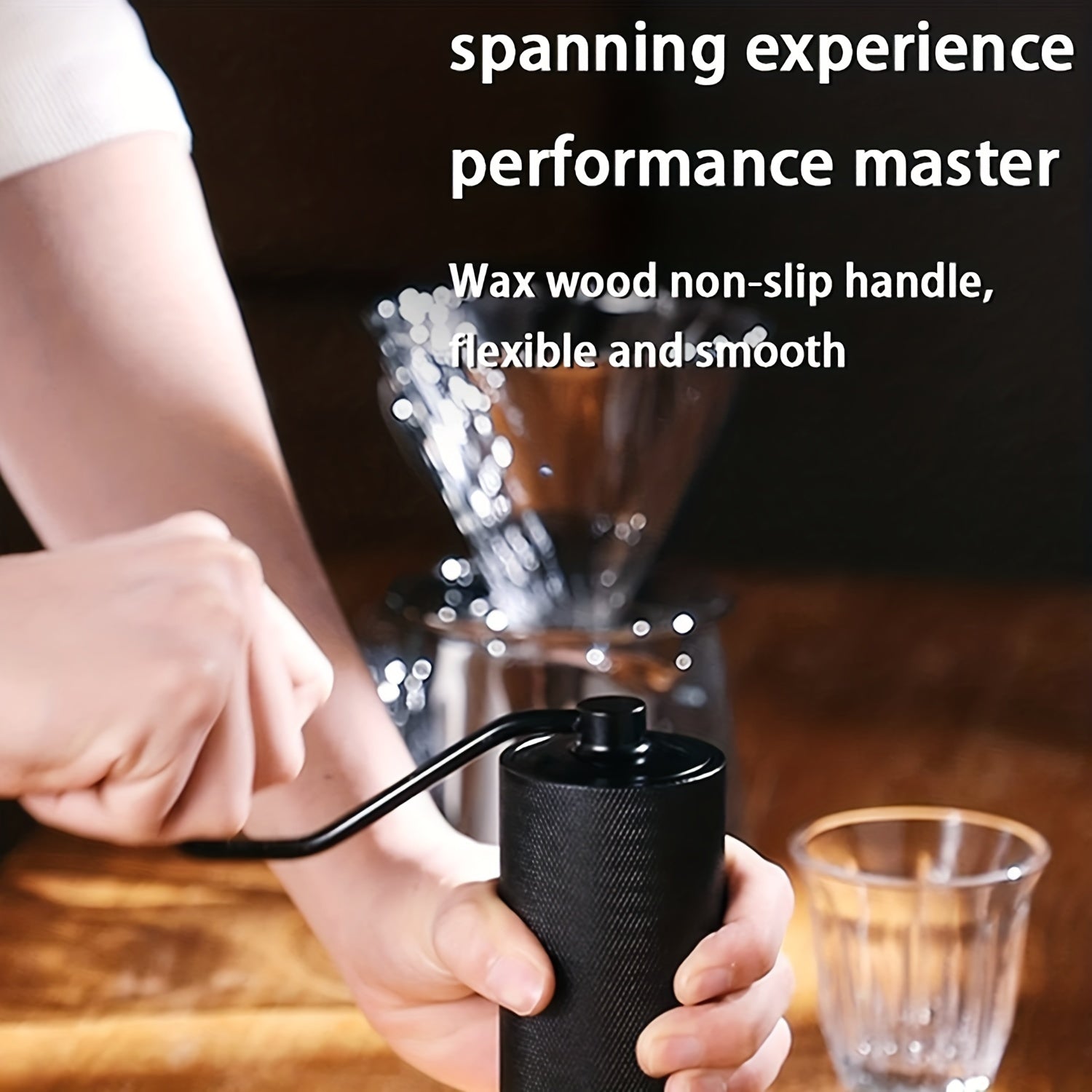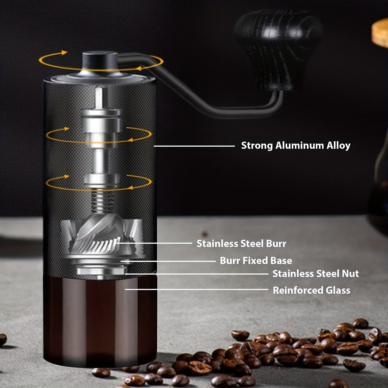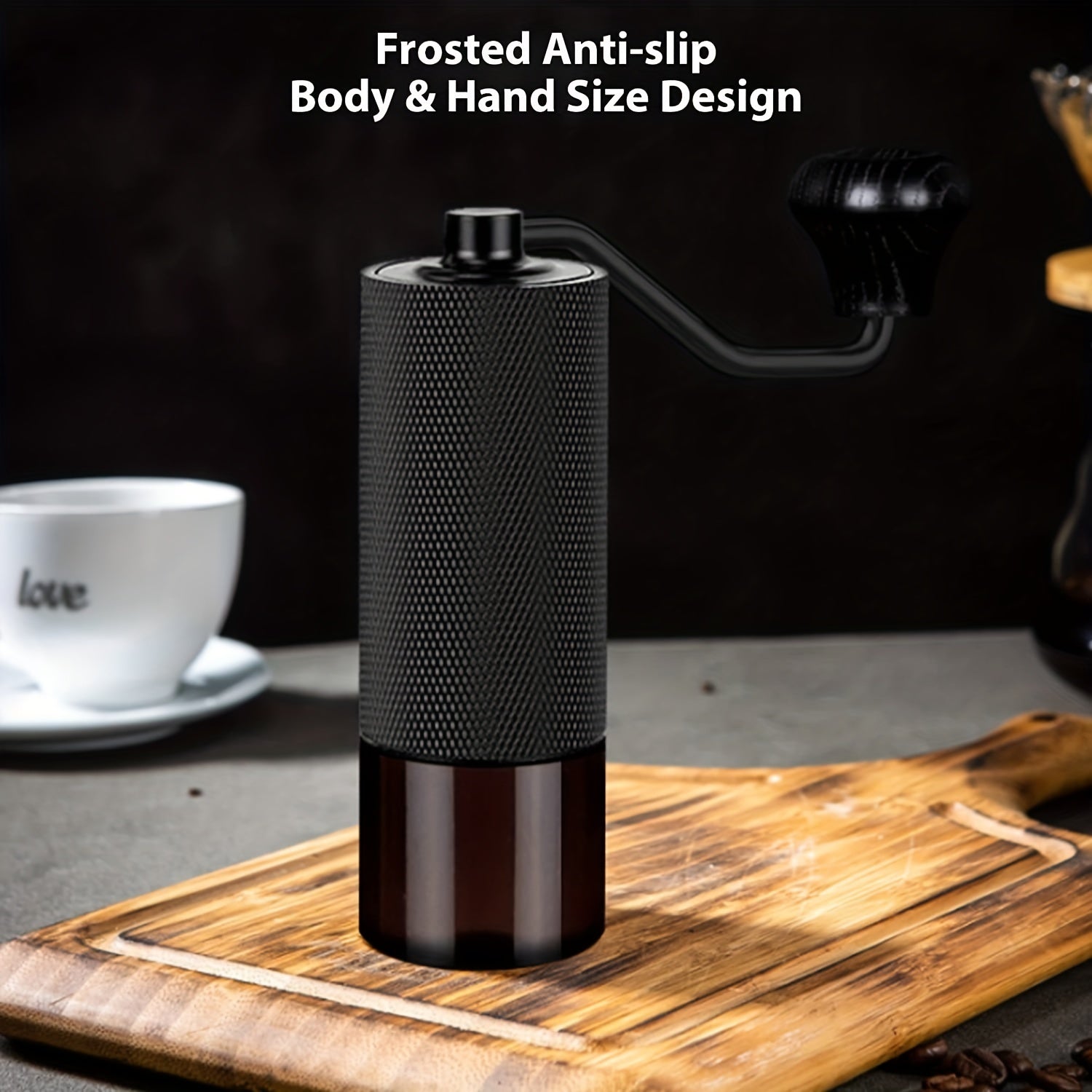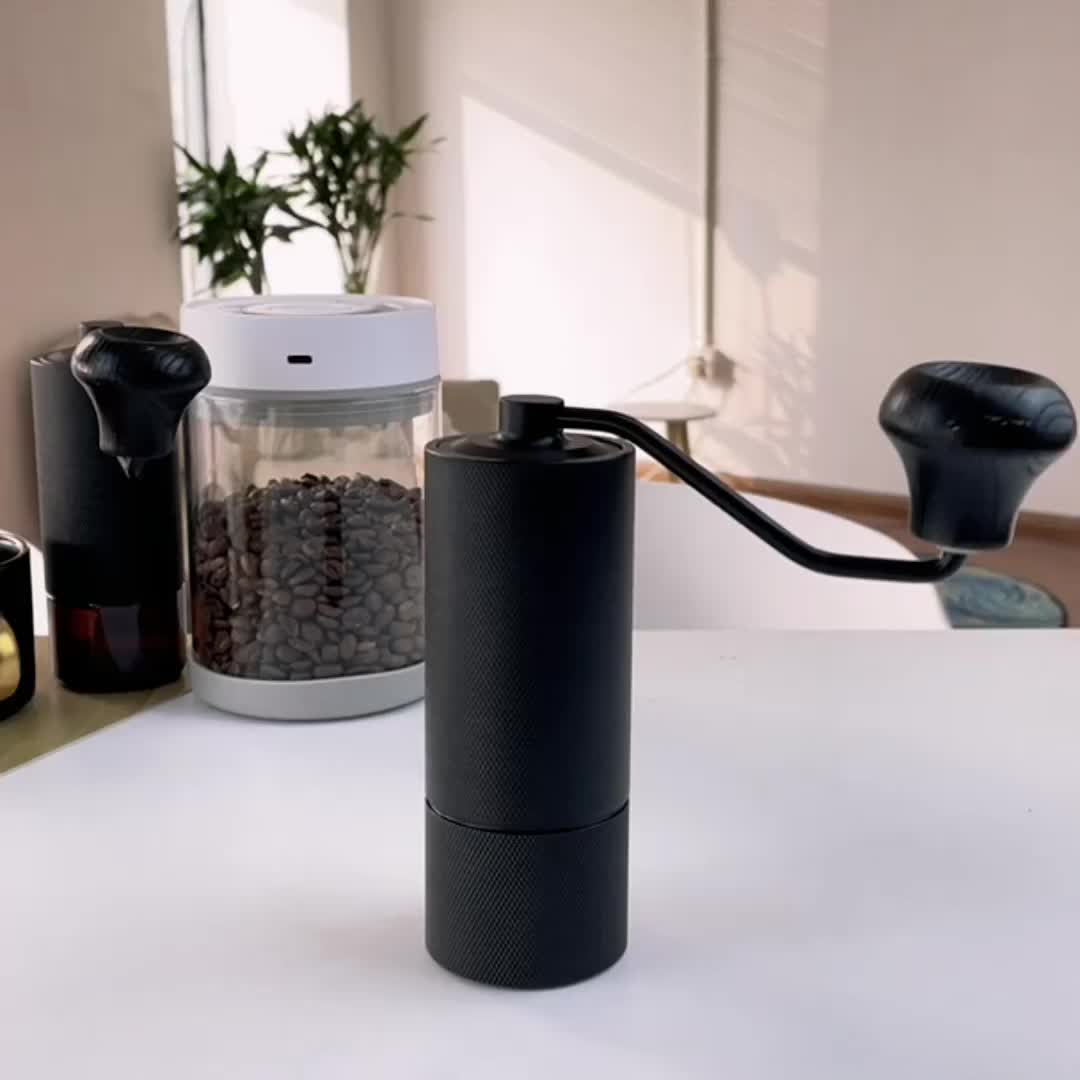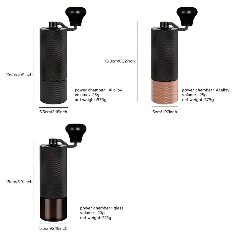 The hand coffee grinder is made with air-craft grade aluminum. And the knurled surface increases friction, thus you can hold the coffee hand grinder securely in your hand while grinding!