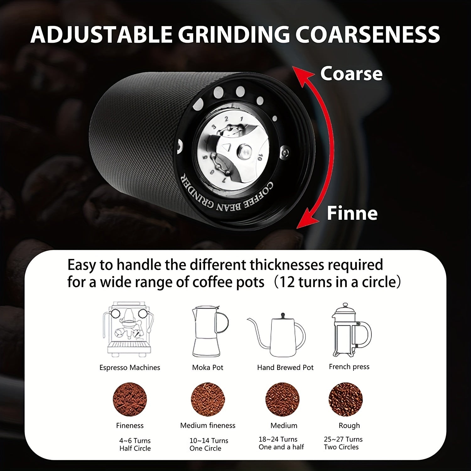 【Adjustable Grinding Setting】This manual burr coffee grinder with over 27 adjustable levels can adjust the grinding thickness, which is convenien