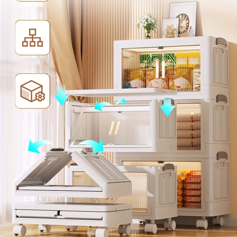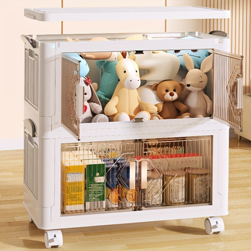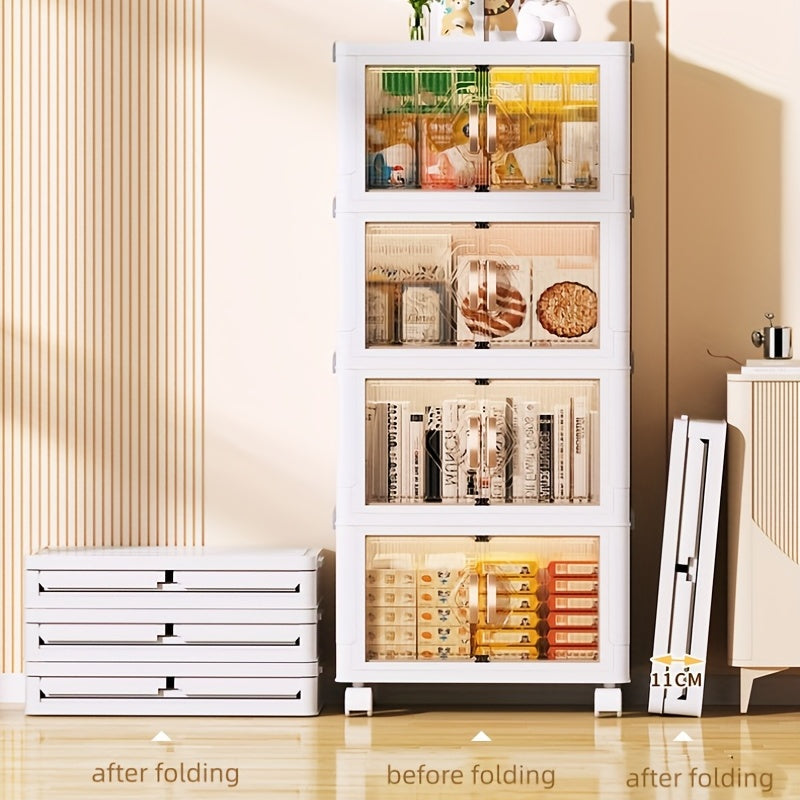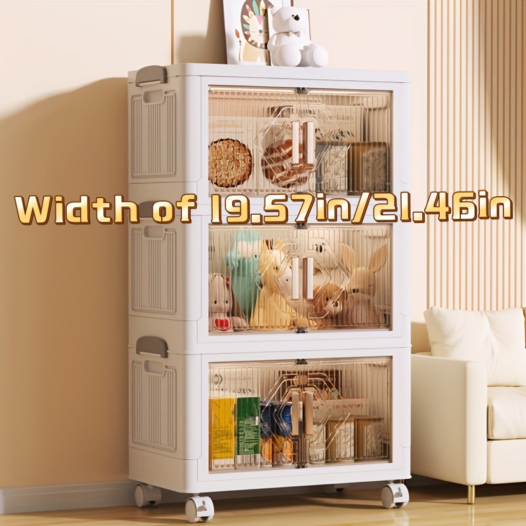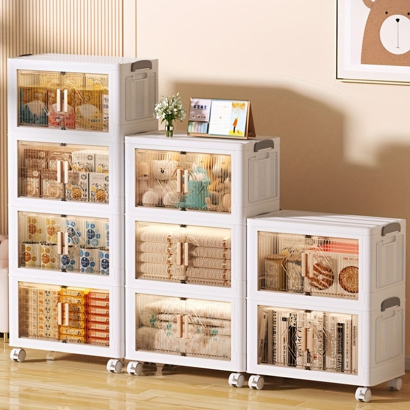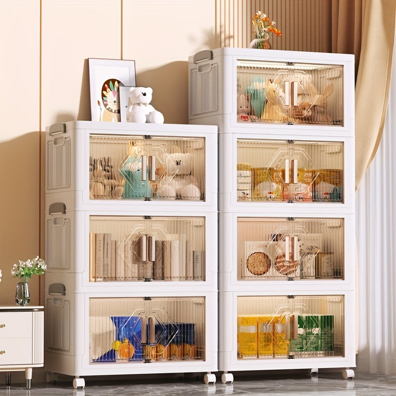 1pc Study Stackable Movable Storage Bookcase, Living Room Large Capacity Snack Sundries Floor With Wheels Storage Cabinet, Bedroom Bedside Storage Rack, Home Essential
