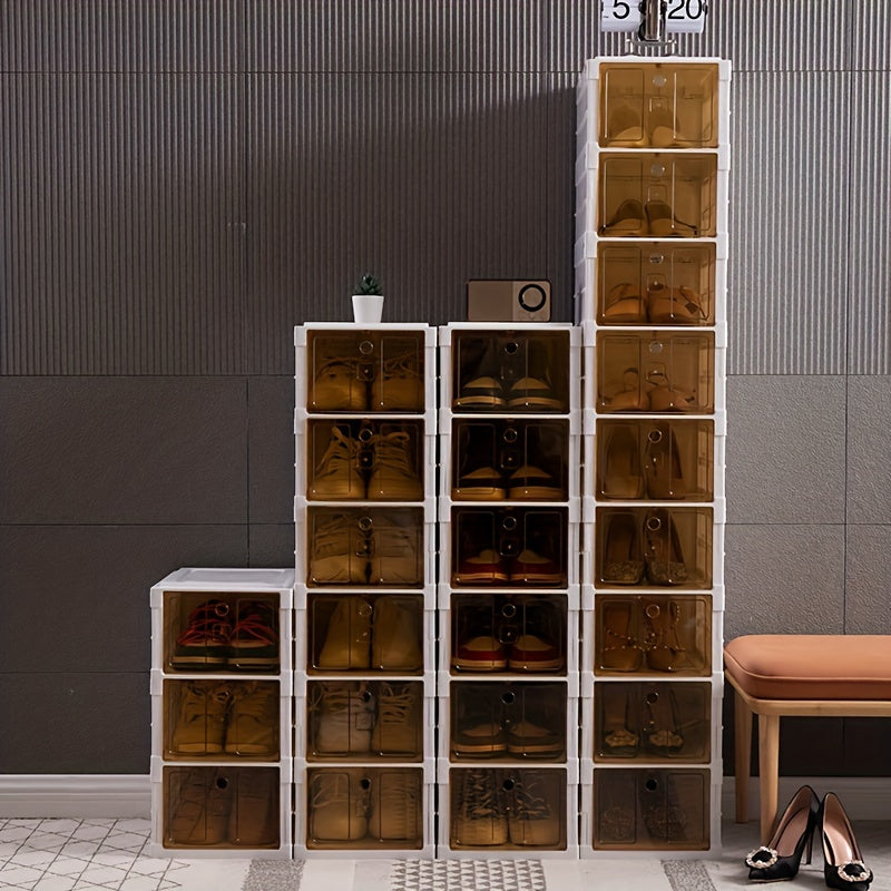 1pc Transparent 3/6 Layers Foldable Shoe Box - Stackable Shoe Storage with Installation-Free Design - Single Row Shoe Organizer for Sneakers and More