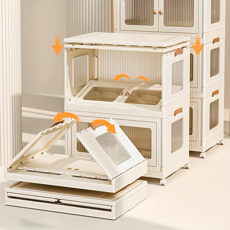 1pc Transparent Collapsible Storage Bin With Lids And Pulley - Portable 1/2/3/4 Layers Organizer For Easy Access & Convenient Storage