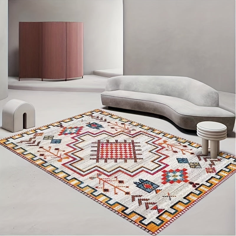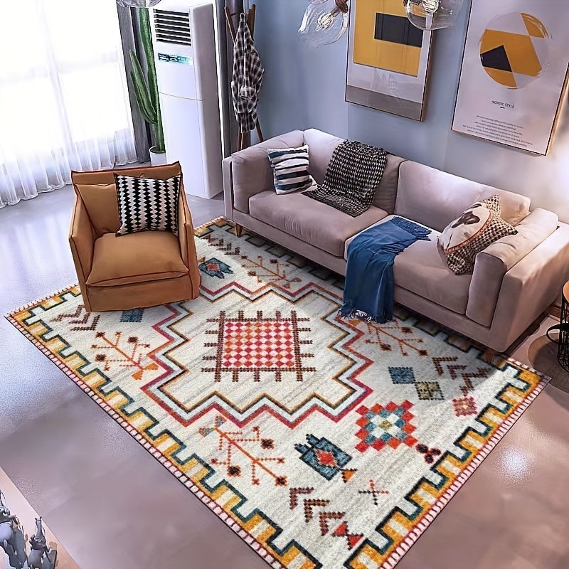 1pc Vintage Velvet Carpet, Machine Washable, European Premium Sense Living Room Coffee Table Villa Room Bedroom Study Area Carpet