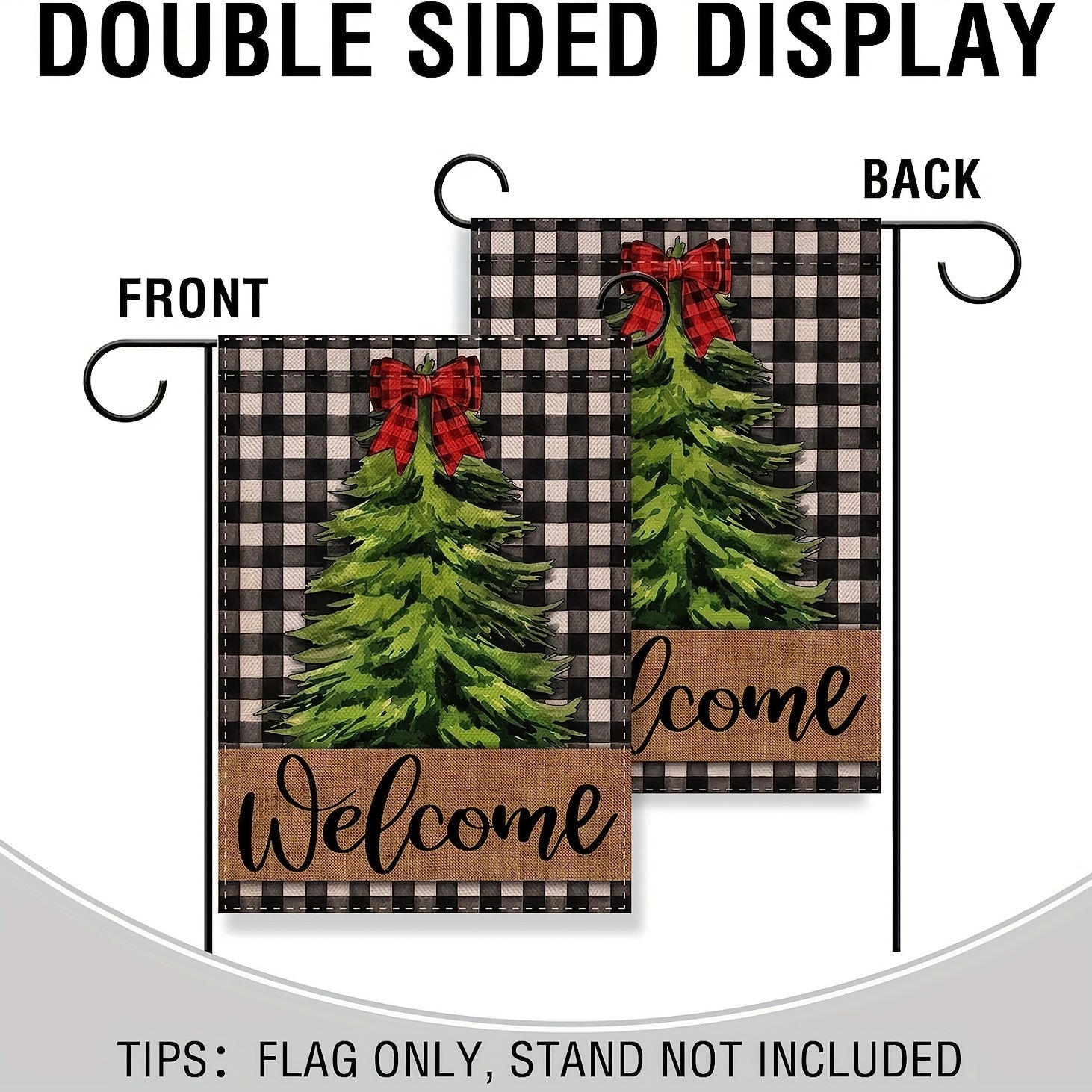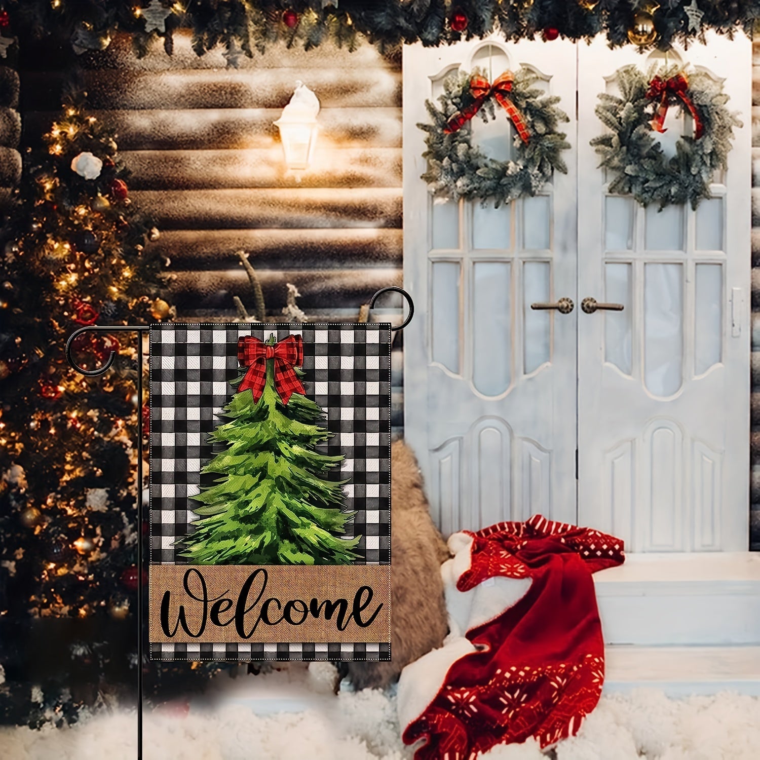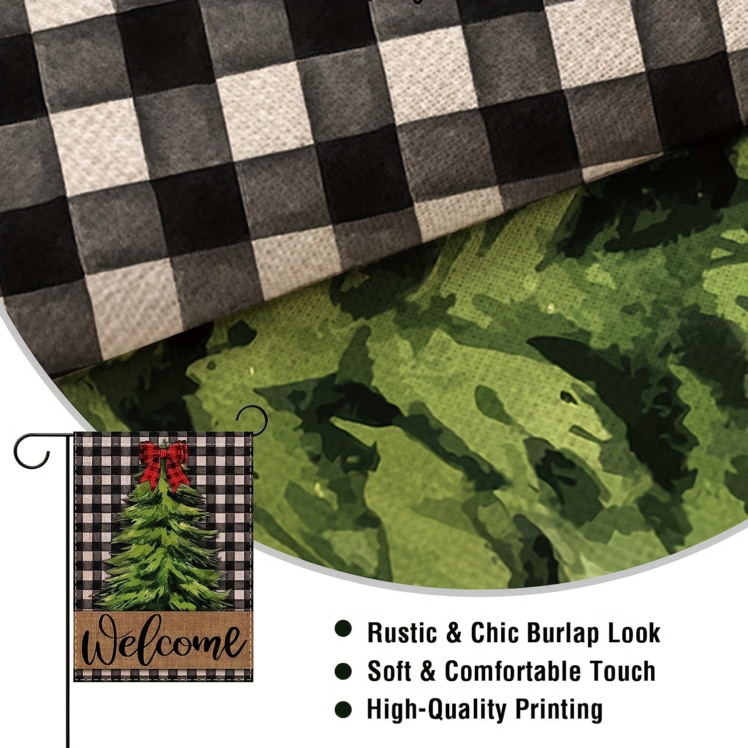 1pc, Welcome Christmas Pine Tree Home Decorative Garden Flag, Xmas Yard Lawn Buffalo Plaid Check Outside Decor, Winter Farmhouse Outdoor Small Burlap Decoration Double Sided 12 X 18 Inch/28 X 40 Inch