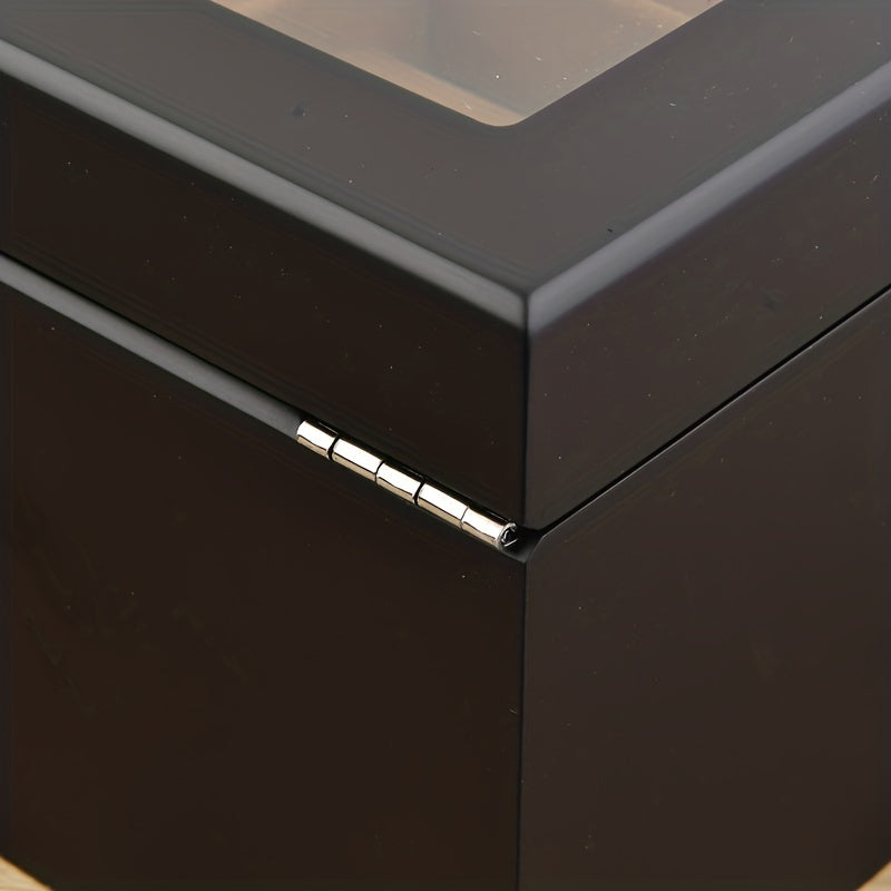 Luxury wooden frame watch case with black matte paint surface and soft interior lining; Show pride in the clock series; The sturdy wide glass window at the top keeps the solar watch charged and showcases the watch in a realistic way