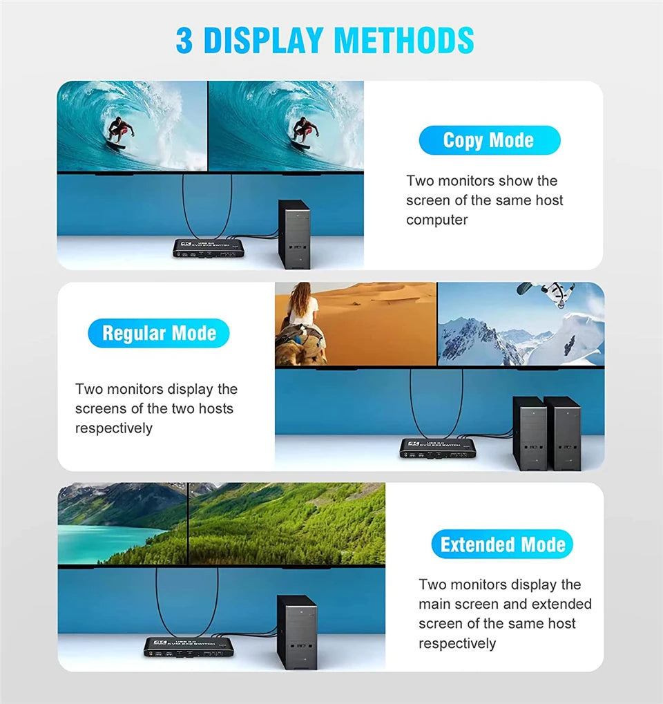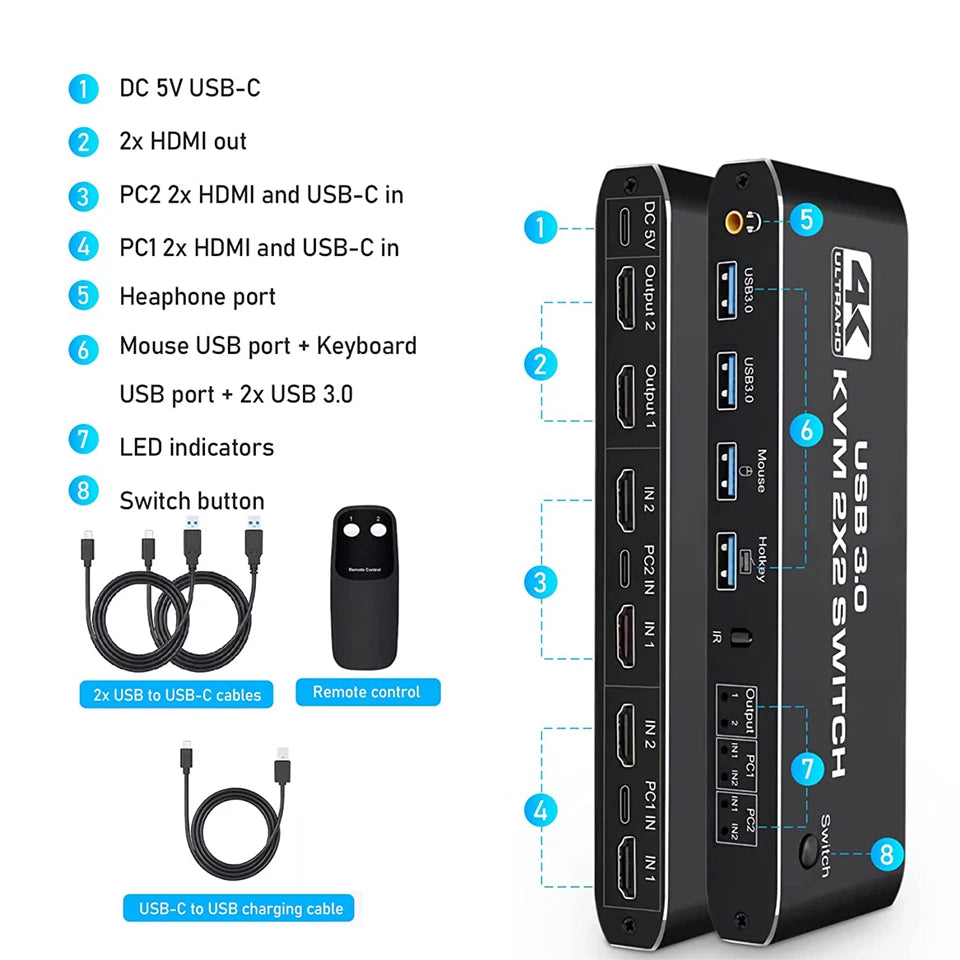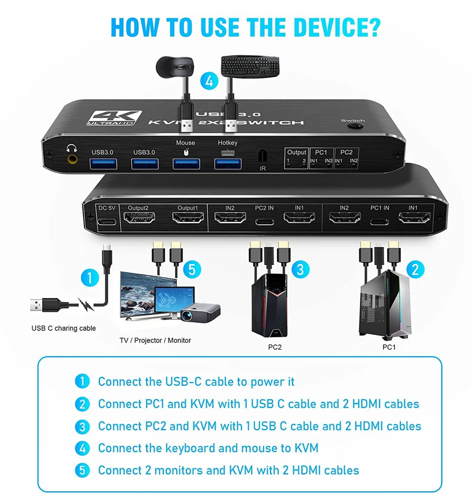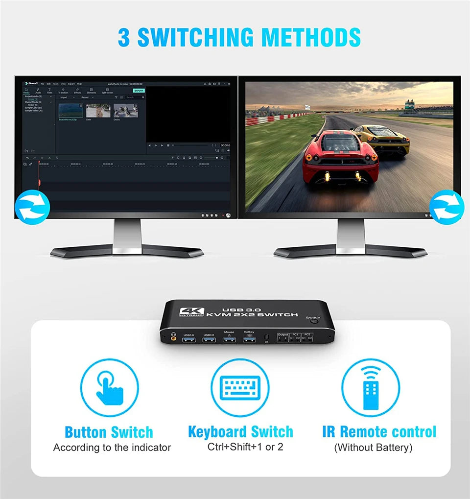 - Product Type: HDMI USB 3.0 KVM Switch (2 in 2 out)