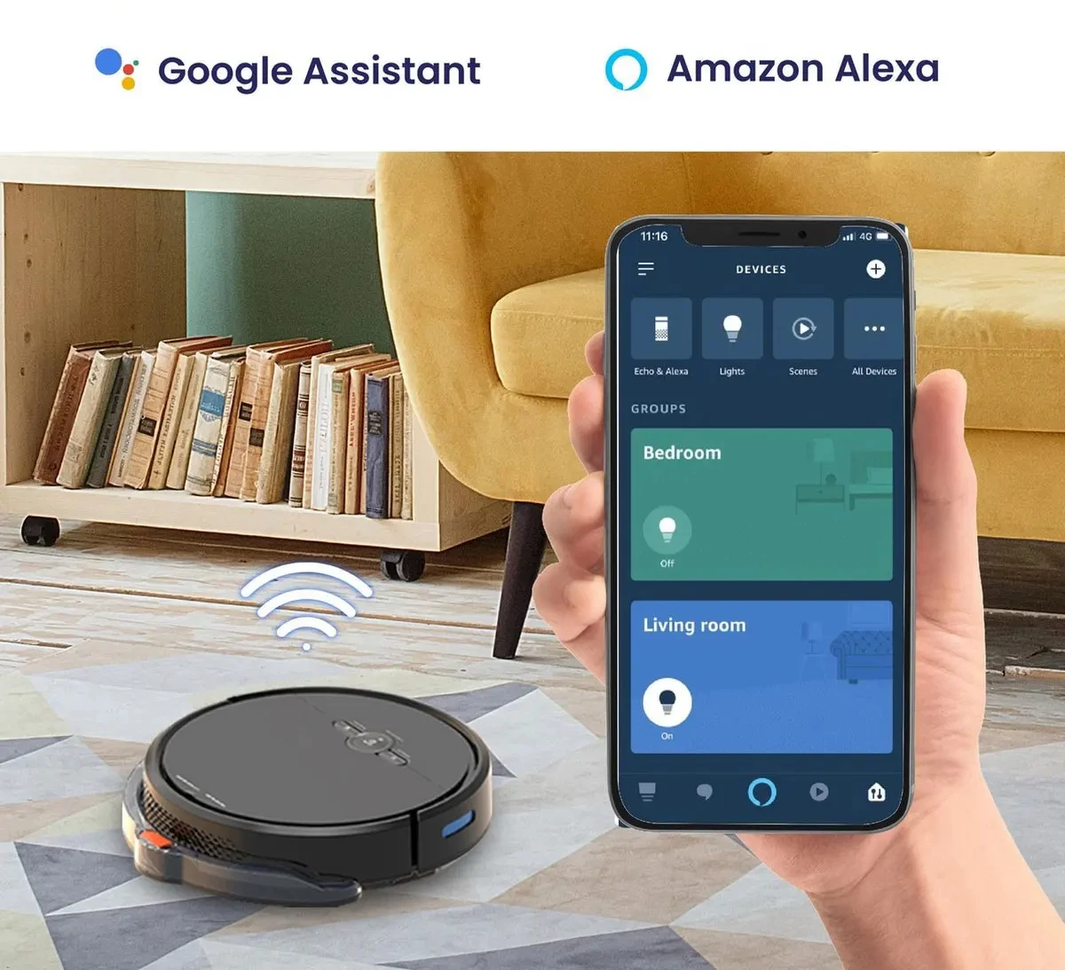 3600PA Robot Vacuum Cleaner Smart Wireless Auto Charge Wi-Fi With Alexa Google Navigation Area On Map For Pet Hair Sweeper Robot