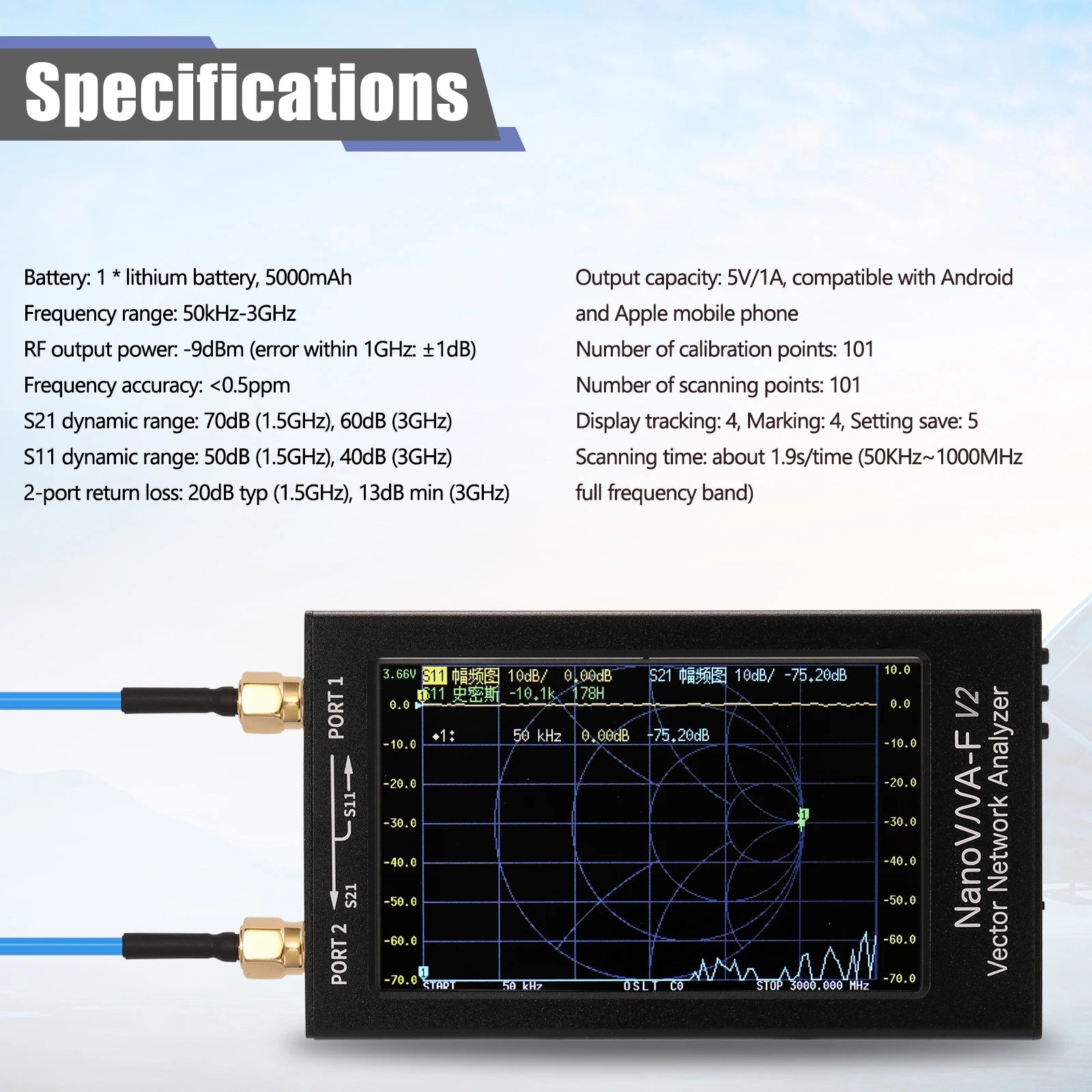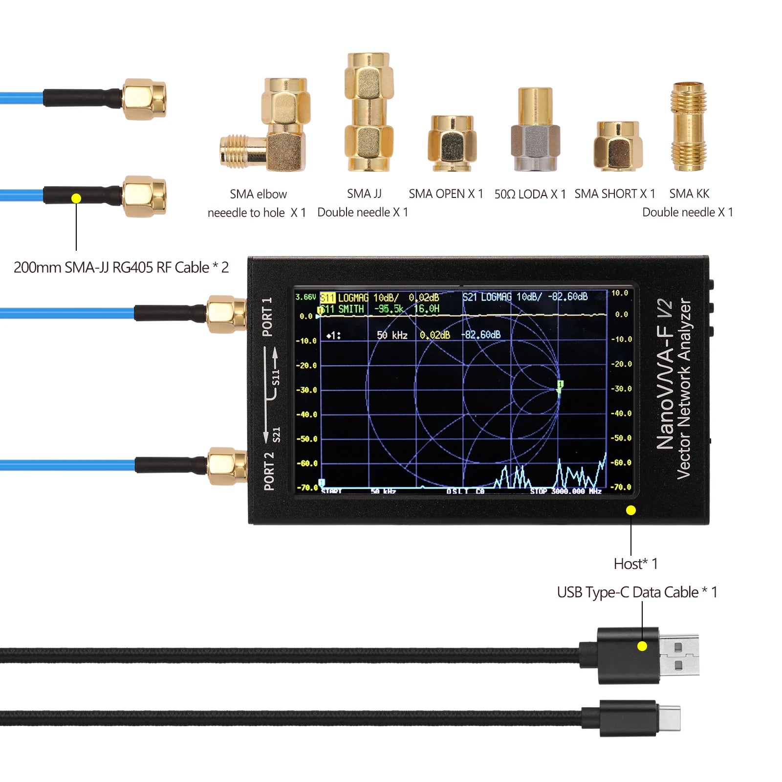 This portable vector network analyzer is a new product. It uses a 4.3-inch IPS LCD display and an aluminum alloy case. It is equipped with a 5000mAh large-capacity lithium battery as standard. Support touching screen and side button operation, support Chinese and English interface. The design of this product is based on OwOcomm's S-A-A V2, and deep optimization of the software is made on the basis of the previous product. The measurement ranges is extended to 3GHz, and the dynamic ranges is larger. The measurement is more accurate and the operation is more convenient.