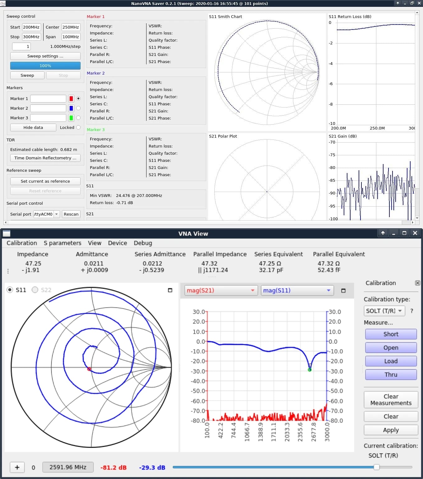 S11 noise floor (calibrated): -50dB (up to 1.5GHz), -40dB (up to 3GHz)