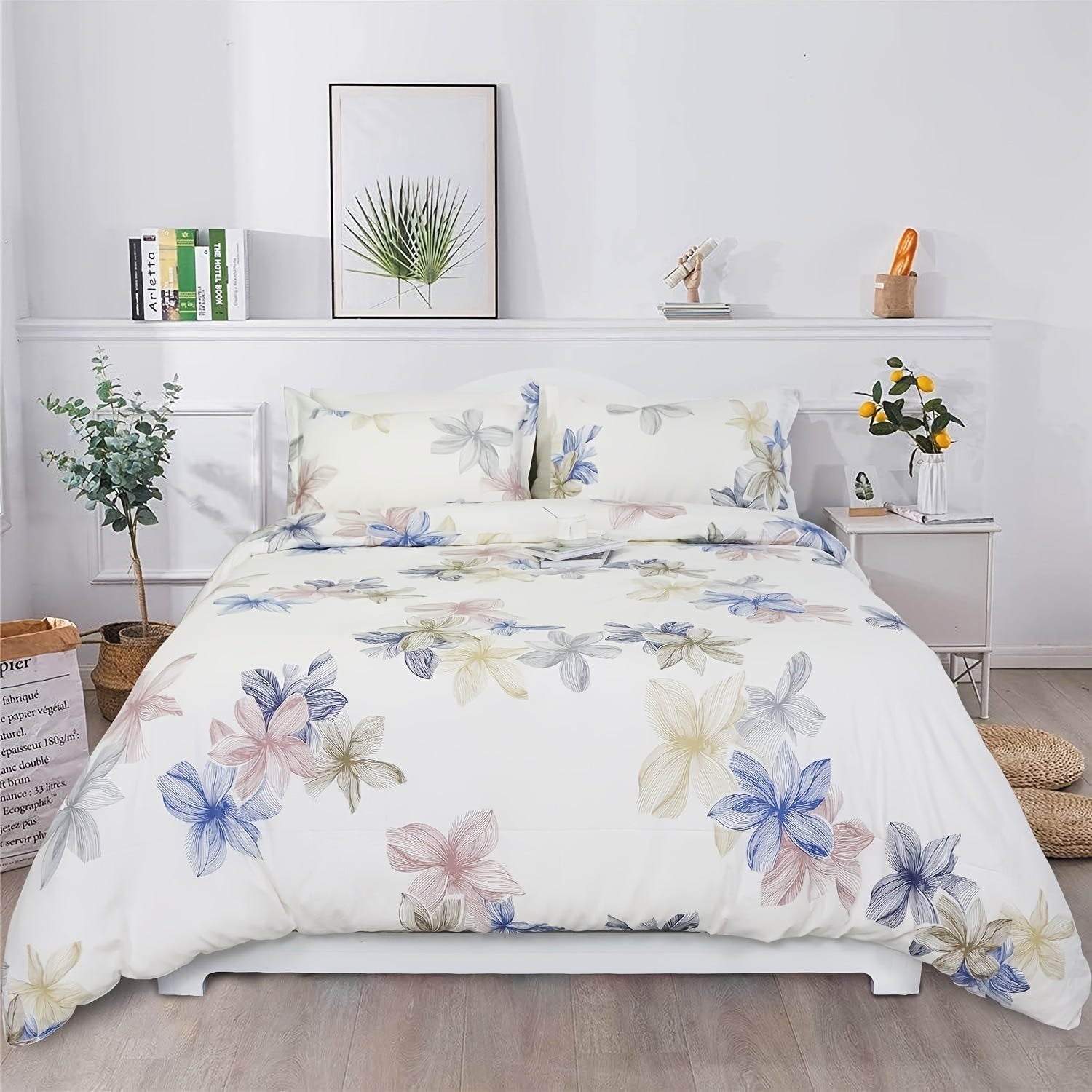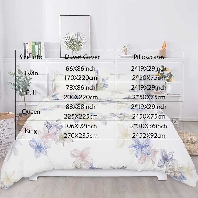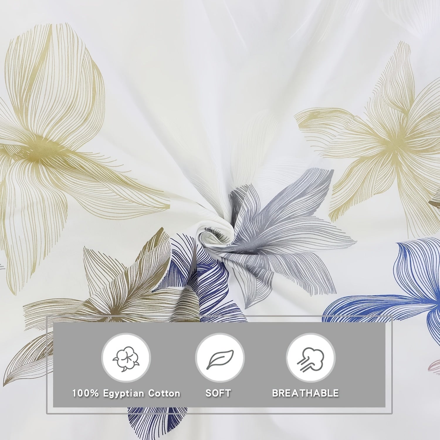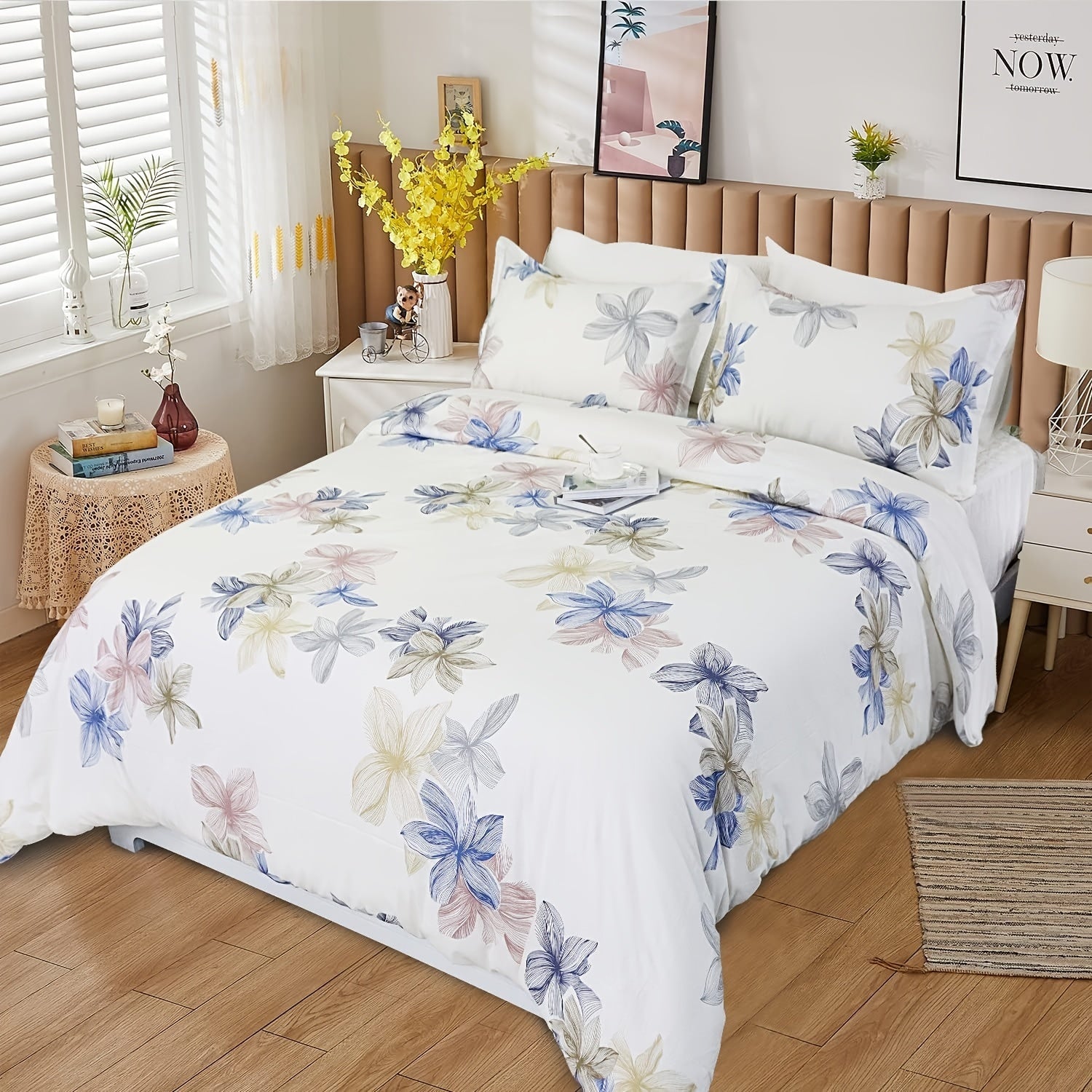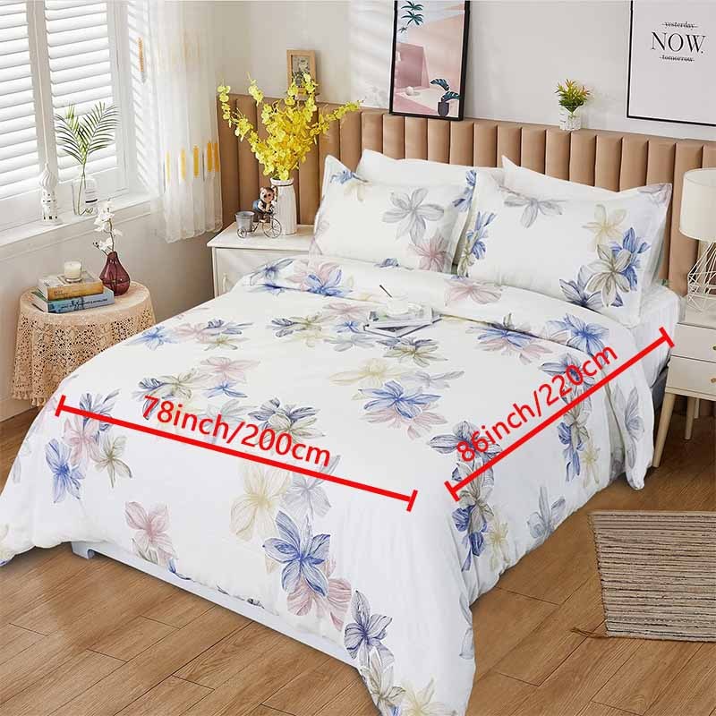 3pcs 600TC Washable Cotton Duvet Cover Set, Floral Print Bedding Set, Soft Breathable And Skin-friendly Duvet Cover, For Bedroom Guest Room School Dorm (1*Duvet Cover + 2*Pillowcase, Without Core)