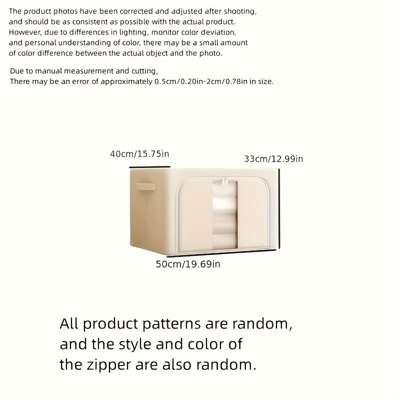 3pcs Clothes Storage Box, Household Wardrobe Finishing Box, Clothes Storage Bin, Oxford Fabric Foldable Stackable Container Organizer With Clear Window, 66L
