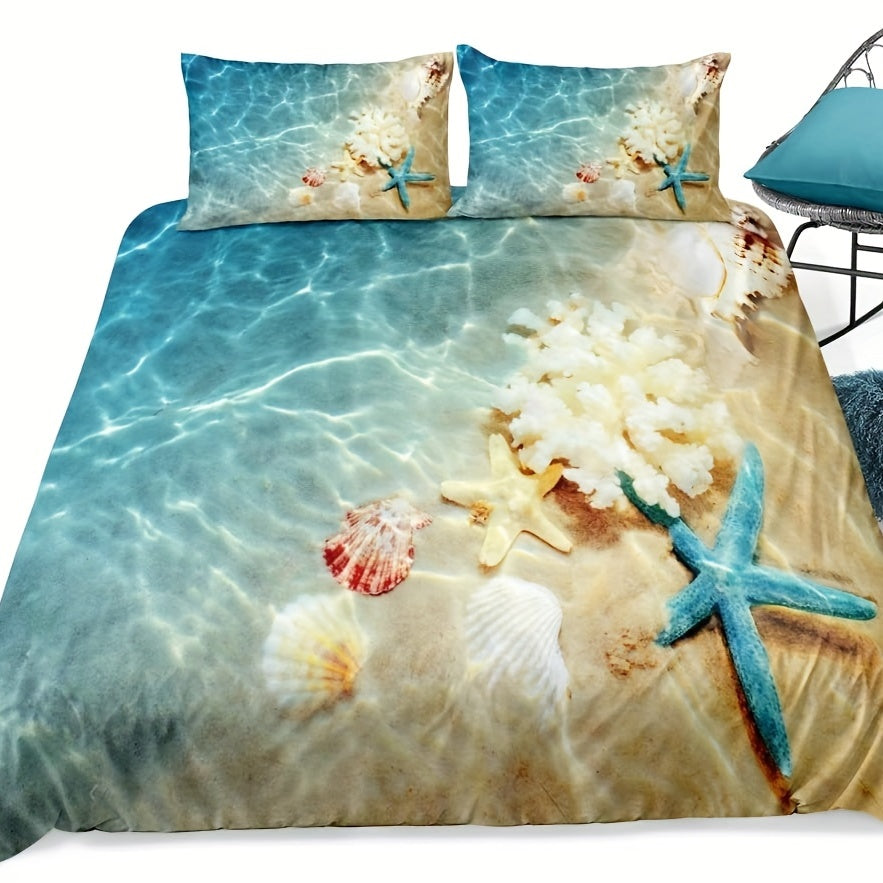 3pcs Soft and Comfortable Coastal Beach Starfish Duvet Cover Set - Perfect for Bedroom and Guest Room - Includes 1 Duvet Cover and 2 Pillowcases (Core Not Included)