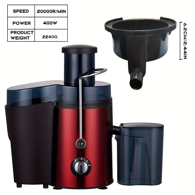 400W Centrifugal Juicer Extractor For Fruit & Vegetable With 3 Speed Modes, 65mm Wide Feed Chute, Stainless Steel Body, Easy To Clean, Safety Locking, Overheat Protection, Non-Slip Feet - Perfect For Hard And Soft Fruits - Red/Silver
