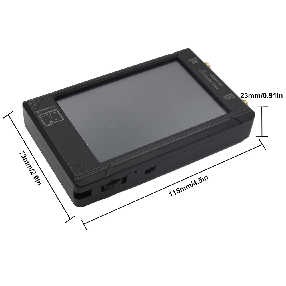 Feature: 1.Versatile Spectrum Analyzer: This 4-inch screen handheld tiny spectrum analyzer operates in the 0.1-800MHz range, or in ultra mode from 0.1MHz-6GHz. When not used as a spectrum analyzer, it can function as a signal generator with a sine wave output between 0.1-800MHz, and a square or dual-tone output up to 4.4GHz. 2.Adjustable Resolution Bandpass Filter: Our TinySA spectrum analyzer features a switchable resolution bandpass filter that fits two ranges between 200Hz and 850kHz, making it adaptable to meet various analytical needs. 3.Color Display and Comprehensive Scans: The vibrant color display of portable spectrum analyzer shows 450 scanning points covering the full frequency range, providing you with a comprehensive and clear view of the spectrum. 4.Built-in Calibrator and Stepped Attenuator: This spectrum analyzer is equipped with a built-in calibration signal generator for self-check and (low) input calibration. It also features an input stepped attenuator ranging from 0dB to 31dB (not used in combination with LNA), providing accurate and reliable measurements. 5.Portable and Computer-Controlled: With its rechargeable battery offering at least 2 hours of portable use and the ability to connect to a computer via USB, frequency analyzer can serve as a computer-controlled spectrum analyzer or signal generator. Despite its small size and low cost, remember not to exceed its maximum input level of +10dBm to avoid damaging your tinySA. Note there are specific limitations related to the tinySA and tinySA Ultra due to their low-cost and small form factor. Specification: Certification: CE Origin: Mainland China DIY Supplies: ELECTRICAL Display Size: 3.0 - 4.9 Inches Display size: 4-inch TFT-LCD (480x320) Maximum low input frequency: 800MHz, 6GHz super mode Resolution filter in steps 1, 3, 10: from 200Hz to 850kHz Maximum output frequency: sine up to 800MHz, square wave up to 4.4GHz Output level: -104dBm to -16dBm Ultra mode: Level calibration up to 5.3GHz Internal LNA gain: 20dB to 4GHz Points displayed per scan: 450 maximum 0-350MHz scan time: 165 milliseconds Minimum zero span time: 17 milliseconds DANL at 100MHz: -153dBm/Hz (LNA off) / -169dBm/Hz DANL degrades in super mode: 10dB above 2.5GHz, 25dB above 5.3GHz Phase noise at 10kHz offset: -92dBc/Hz Phase noise at 100kHz offset: -110dBc/Hz Input 1dB compression level: +0.5dBm (low noise amplifier off)/26.5dBm (high noise amplifier on) IIP3 without LNA: +18dBm (at least 2MHz apart)/0dBm (500Hz apart) IIP3 with LNA: -8dBm (at least 2MHz apart) Frequency stability: SD card slot micro SD card Audio output: 3.5mm headphone plug Firmware update mode activation: press the jog button in front of the machine Shell material: ABS Product size: about 115.00x73.00x23.00mm Product size: 4.53x2.87x0.91inch
