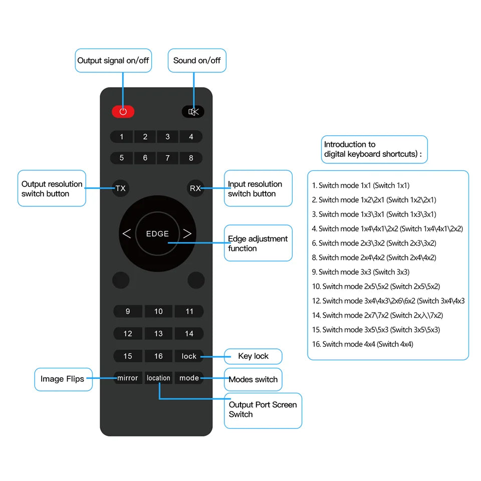 Support  1x1,1x2, 1x3, 1x4, 2x1, 2x2, 2x3, 2x4, 2x5,2x6,2x7,3x1, 3x2, 3x3, 3x4,3x5,4x1, 4x2,4x3,4x4,5x2,5x3,6x2,7x2 modes for your choice