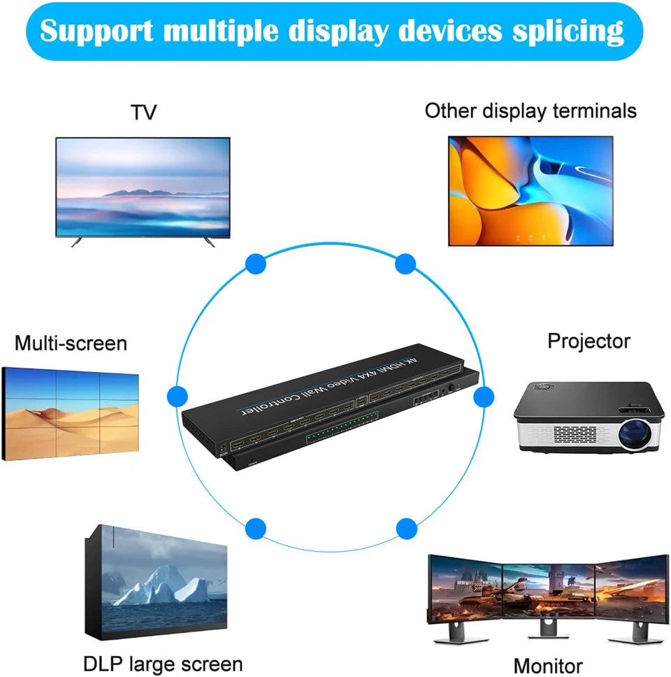 • 🌈【Eye-catching video walls 】HDMI video processor allows you to create a gorgeous large-scale video walls and digital signage displays via LCD splicing screens.HDMI signal interface with audio decoding, audio and video perfect synchronization, so stunning!