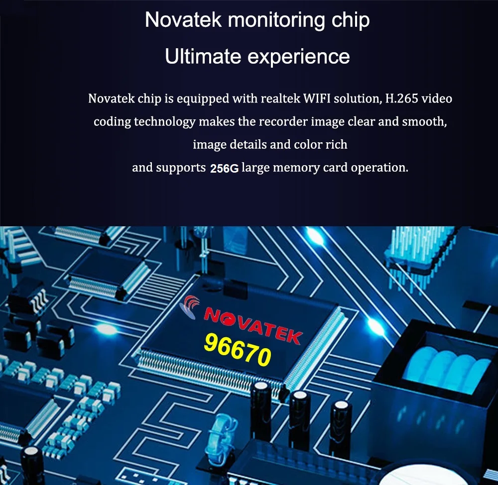 3.Special Features: Dual lens(option); 24-Hour Parking Monitoring(option); WIFI Function ; Night Vision ; Auto Power; G-sensor; Microphone; Anti Surge Voltage Impact; Anti Vibration; Real Time Surveillance; Time synchronization; Cyclic Recording; Automatic White Balance; Wide Dynamic Range.