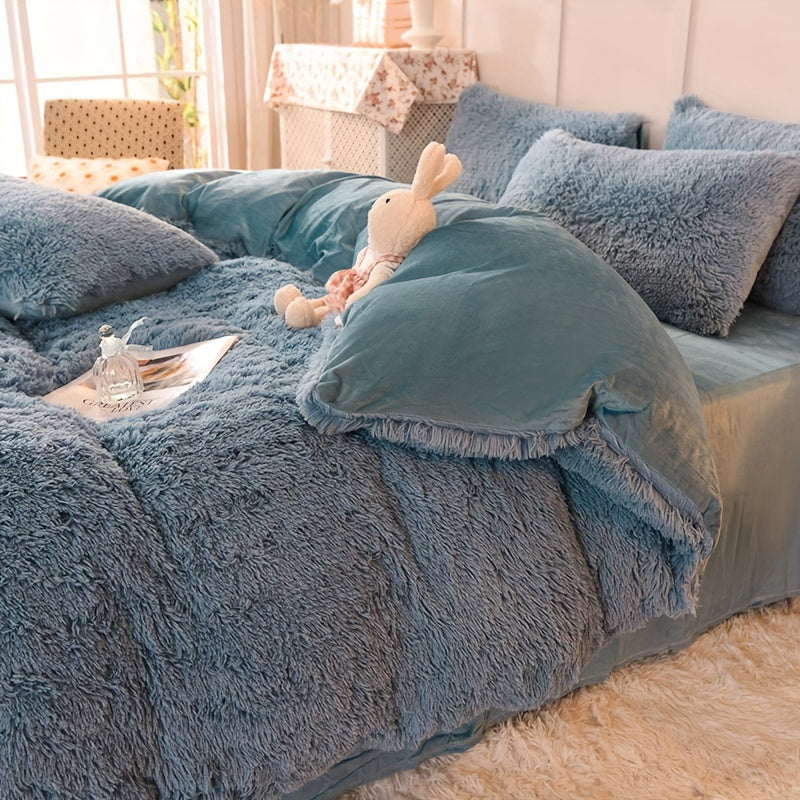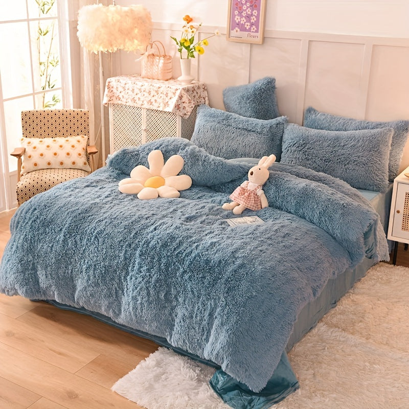 4pcs Mink Velvet Plush Duvet Cover Set For Bedroom, Guest Room, Soft Comfortable & Warm Autumn And Winter Bedding, Gift For Family, Light Blue (1*Duvet Cover + 1*Bed Sheet + 2*Pillowcases, No Core)