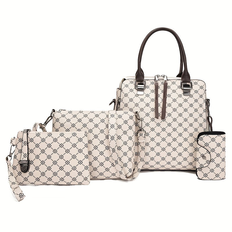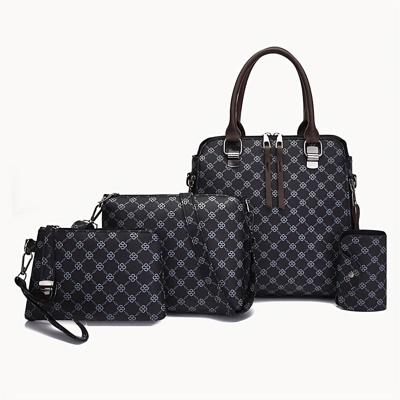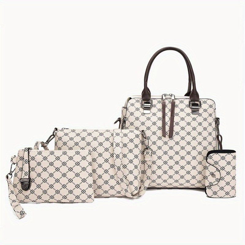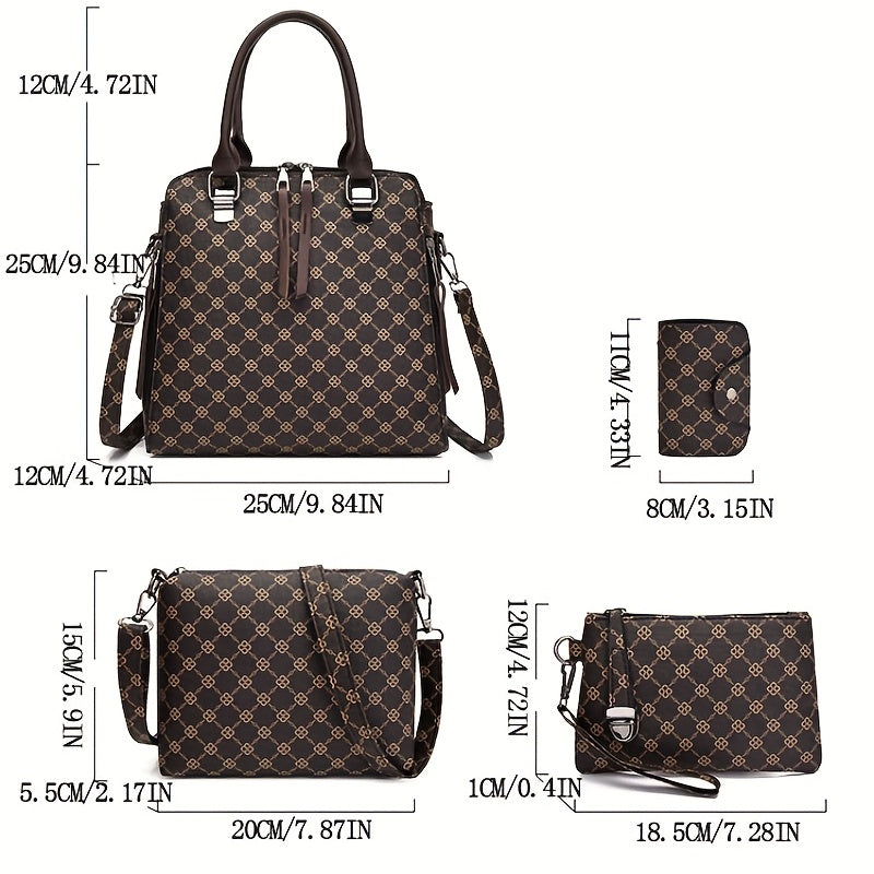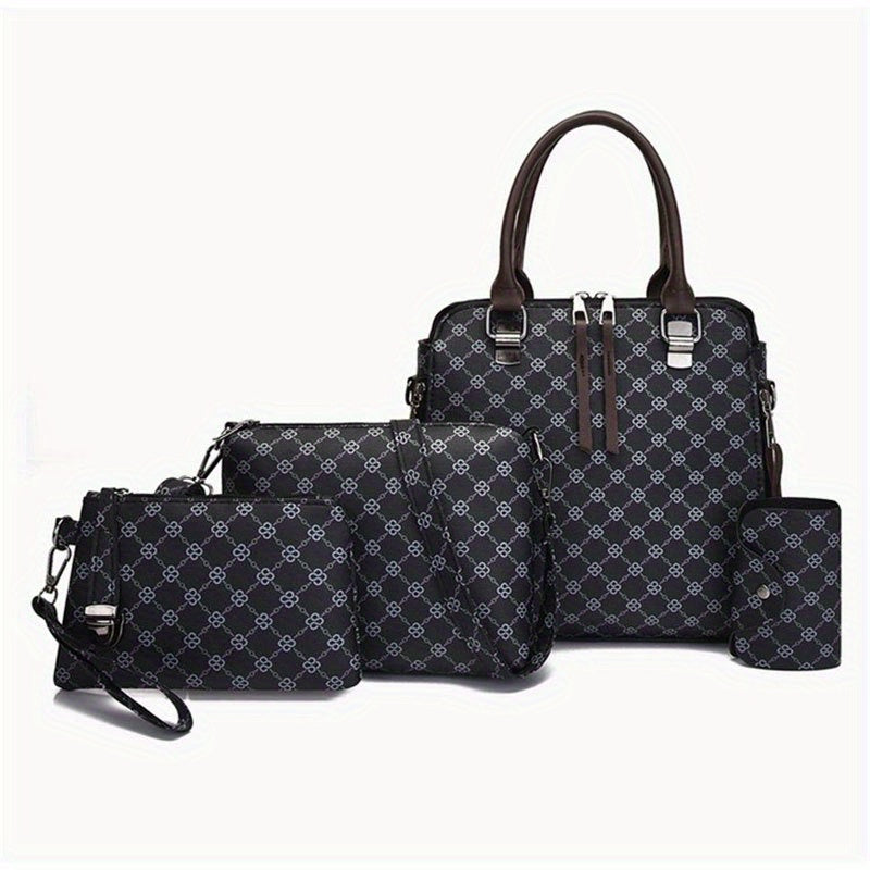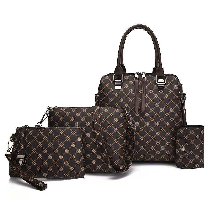 4pcs Set Of Fashionable Printed Large-capacity Handbag, Shoulder Bag, Messenger Bag And Small Purse Wallet Set