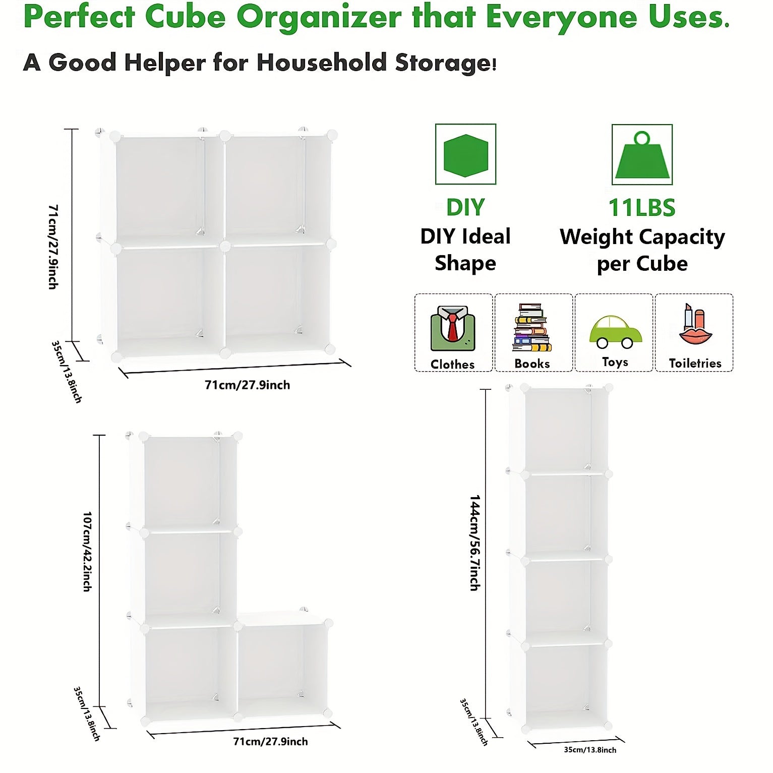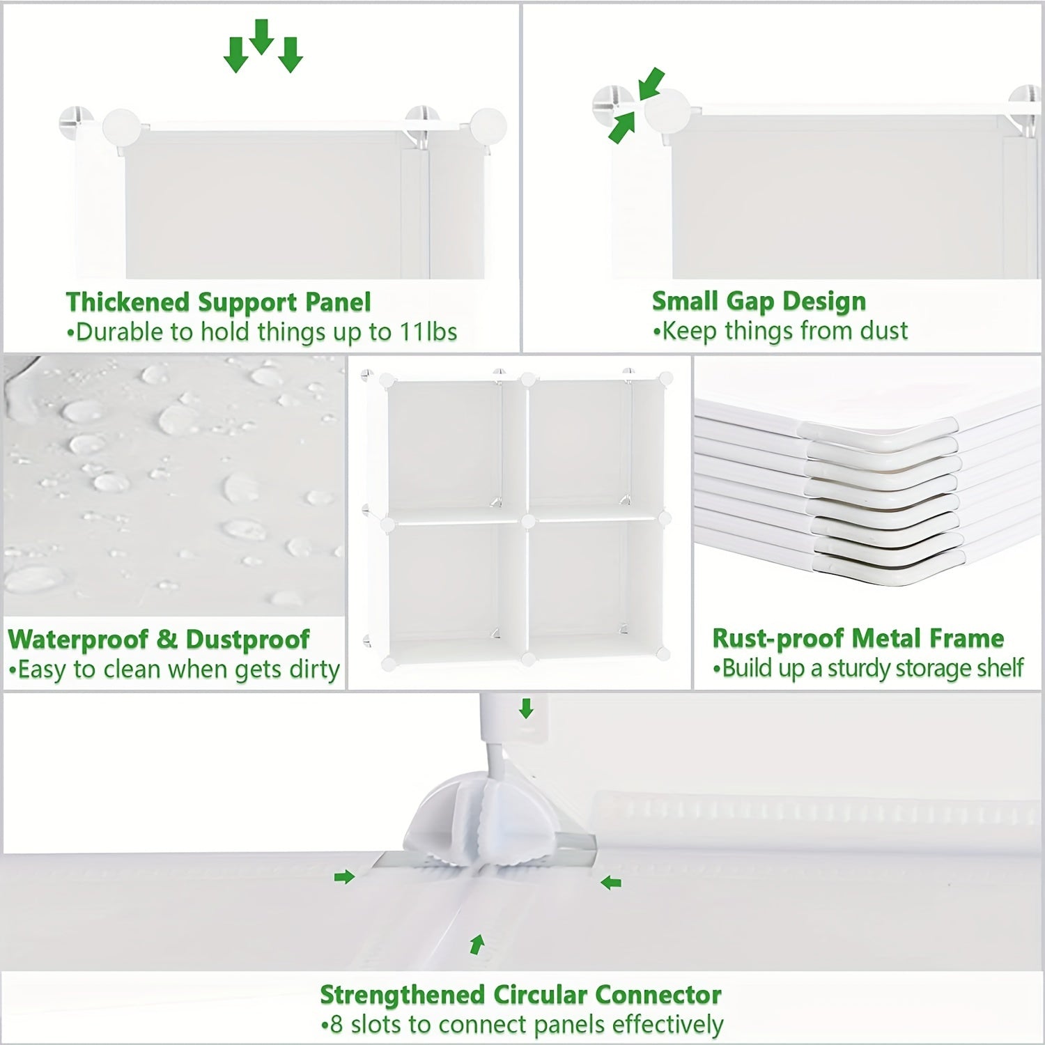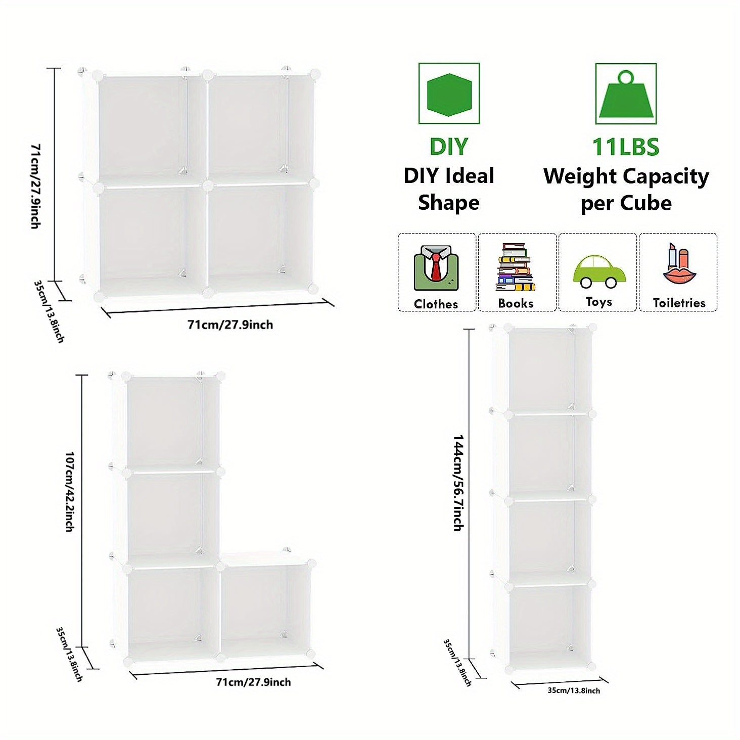 HIGH QUALITY MATERIAL: This cube shelf is made up of high quality PP panels, sturdy metal frame and ABS plastic connectors. Stable structure ensures that each cube can withstand a maximum weight of 11 lbs