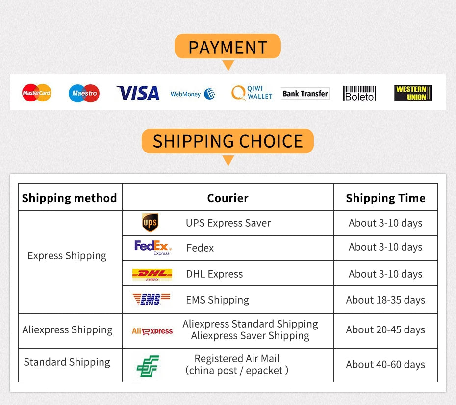 2.We showed the shipping time to customers,so don't leave us negative feedback if your package arrived late,it is caused by shipping company.