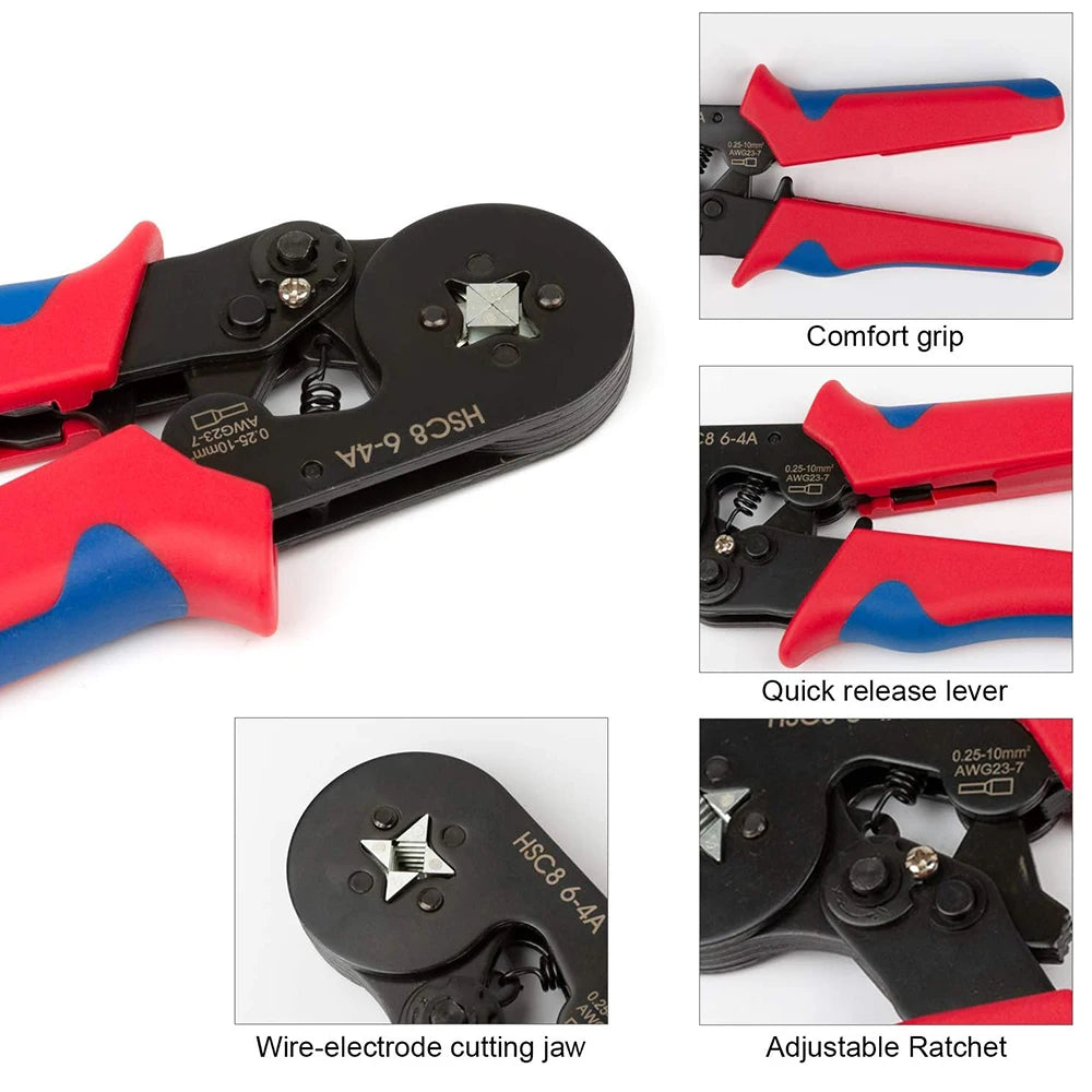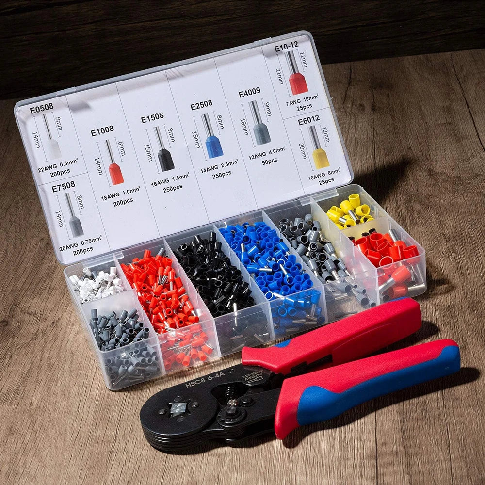 6-4A ratchet cable crimper and 1200Pcs wire terminal connector, used for crimping insulated and non insulated wire end ferrules