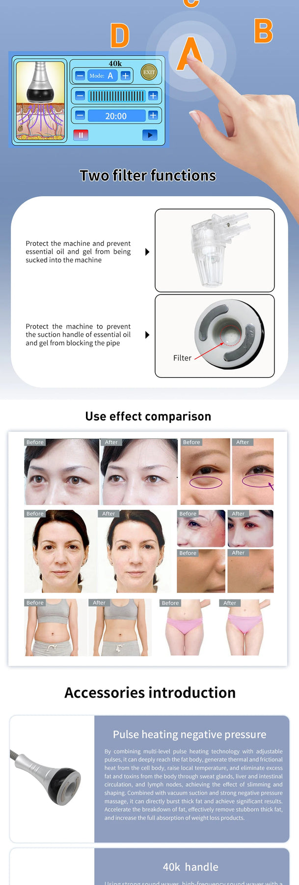 3. Cavitation 40K handle will produce noise, please do not be afraid, this is the sound of ultrasonic work, is a normal phenomenon, if you mind, please do not buy.