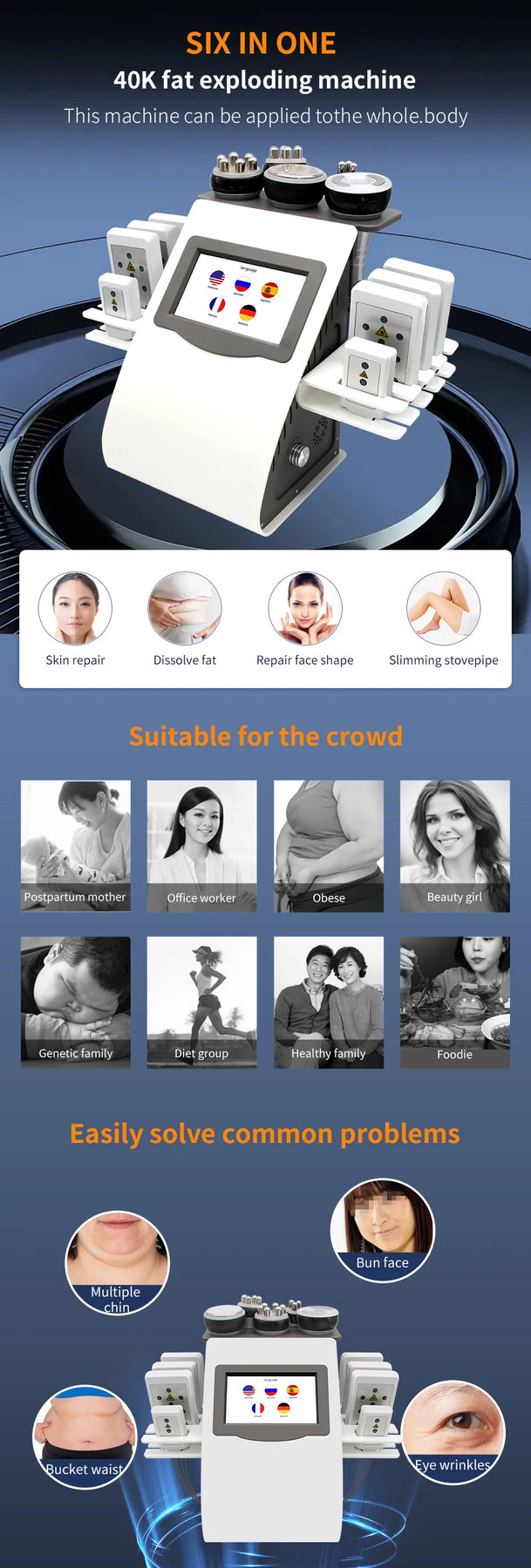 6 In 1 40K Vacuum System Ultrasonic Cavitation Machine Lipolaser Body Slimming Massage RF Cellulite Reduction Skin Lifting Beauty Device