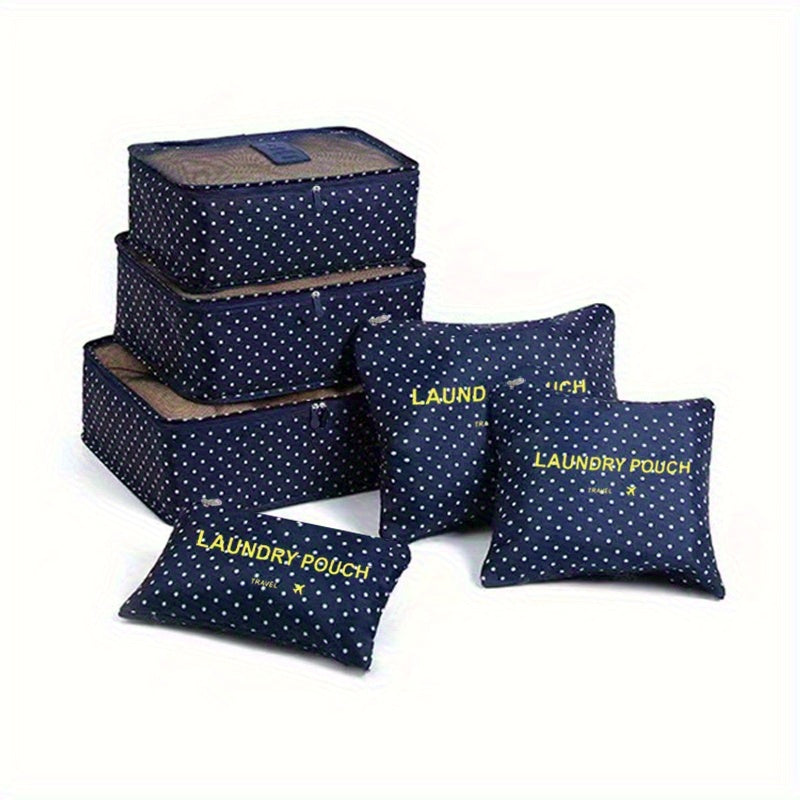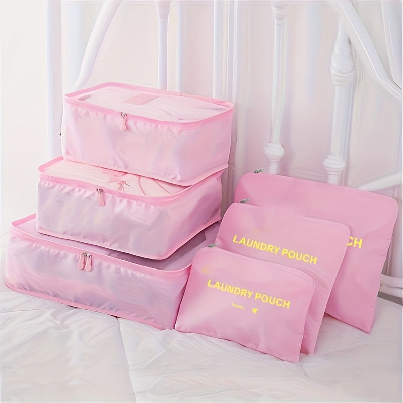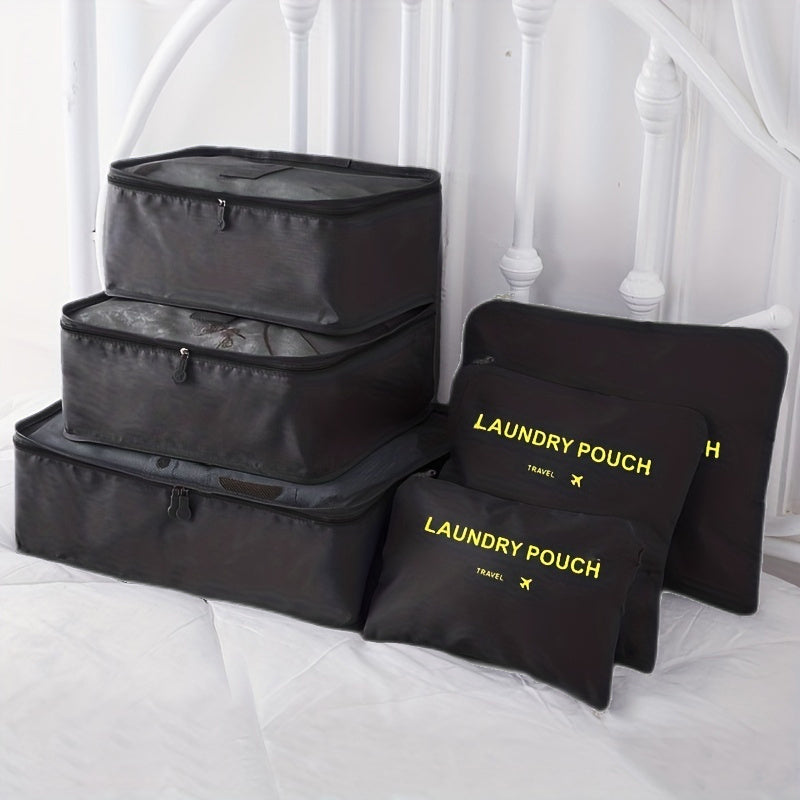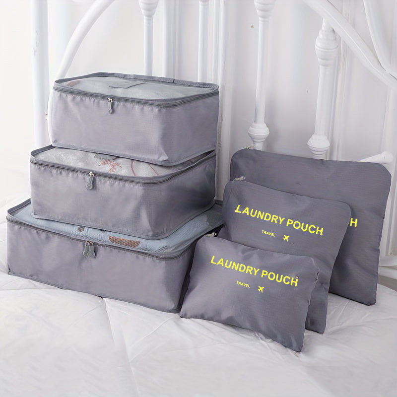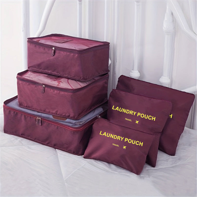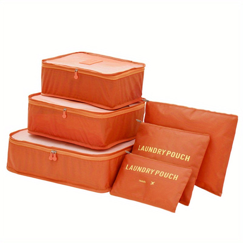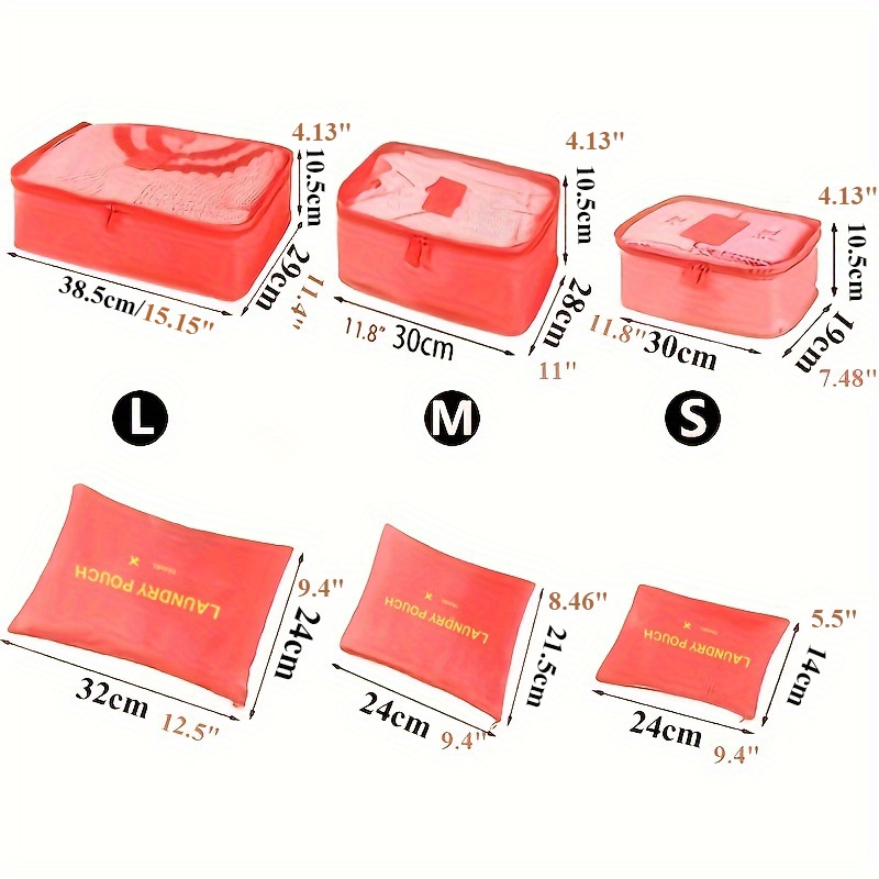 6 different size bag that can hold clothing, footwear, toothbrushes. Moth-proof, Mould-proof, Moisture-proof, Good Permeability. Packing Cubes keeps your clothes and small items neat and safe in one bag. Not Just for Clothes:Also make the perfect travel tote for makeup and beauty products, cosmetic bottles, toiletry kits, pantyhose, delicates, small purses, and even camera accessories. Protect clothes and luggage from wrinkles, dirty and damage during the traveling.