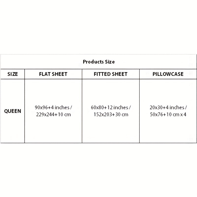1 Printed Flat sheet, 1 Printed Fitted sheet, 2 Printed Pillowcases, and 2 Solid Pillowcases