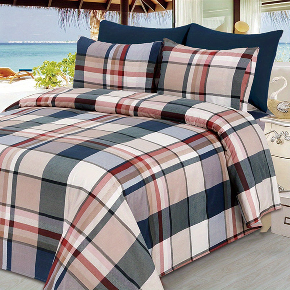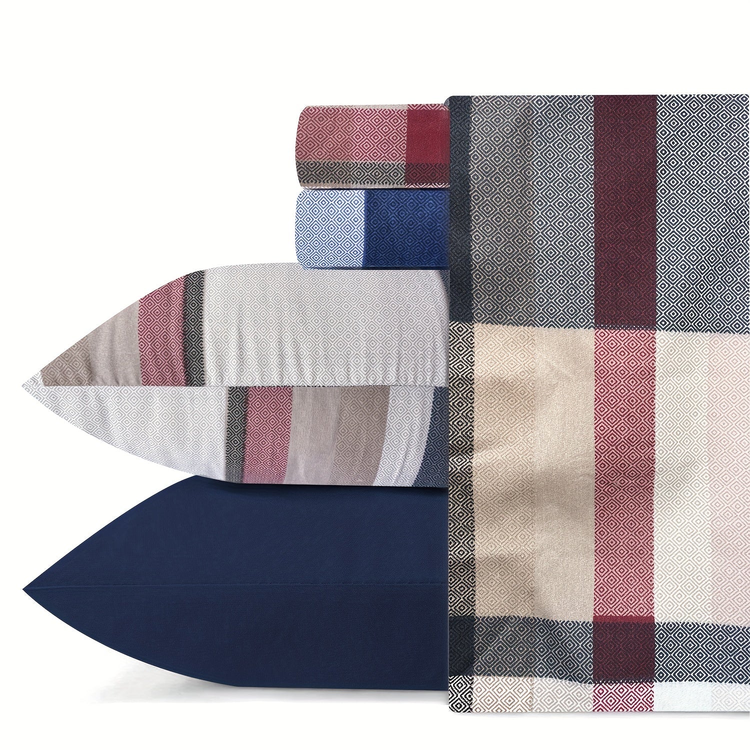 6 Pieces Printed Sheet Set With 2 Print Pillowcases And 2 Solid Pillowcases - Navy Blue Plaid