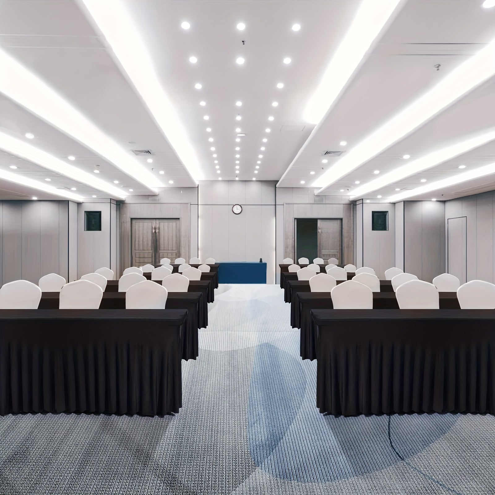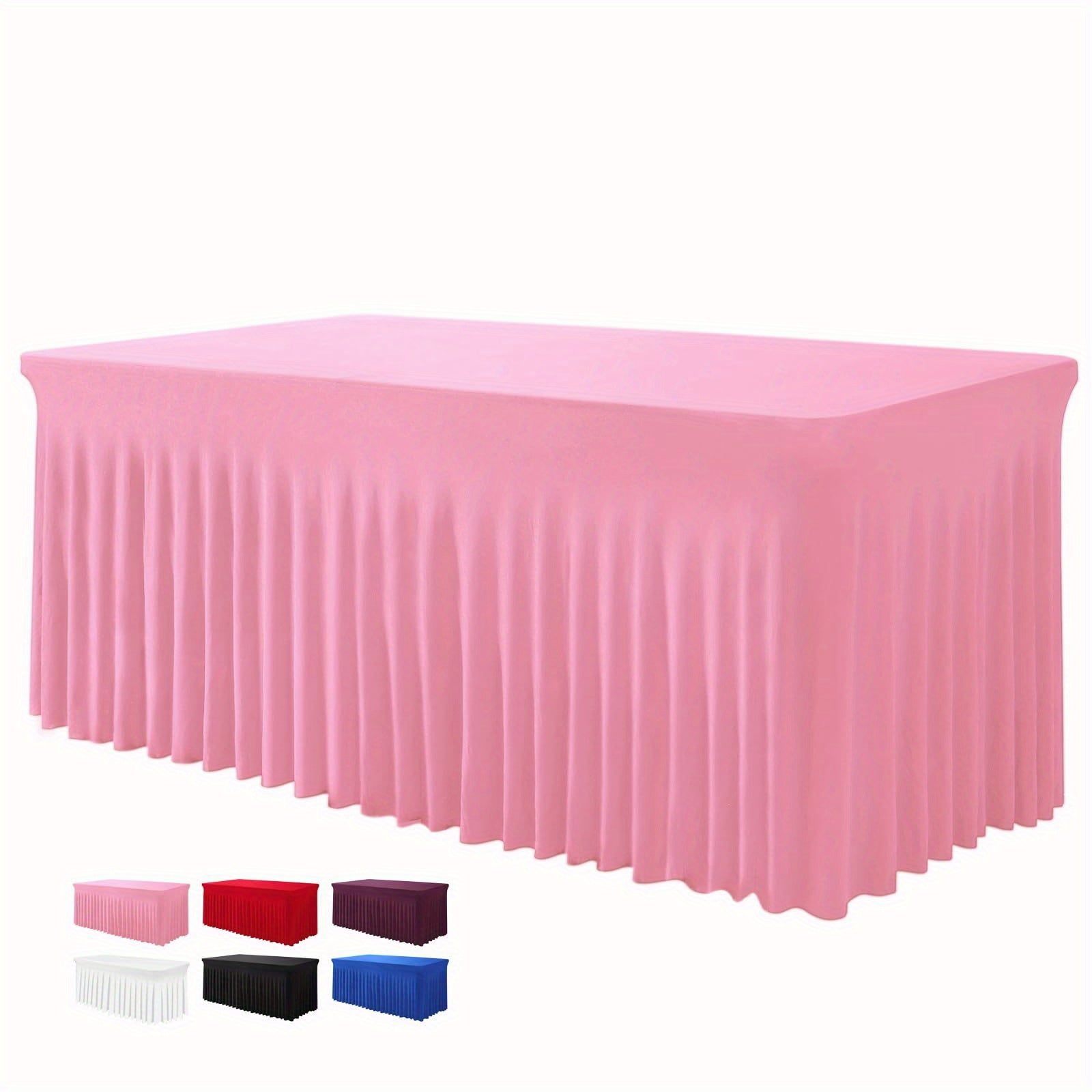 Quick & Easy to Set up: Our stretch table covers are 72'' in length and 30'' in width. The fitted table skirt fits to 6 ft standard rectangular folding table. Just pull the table skirt over the banquet or trade-show table, no clips or fasteners needed. Set up the unique tablecloths for rectangle tables in less than 30 seconds. Add an attractive, professional appearance to your event tables.