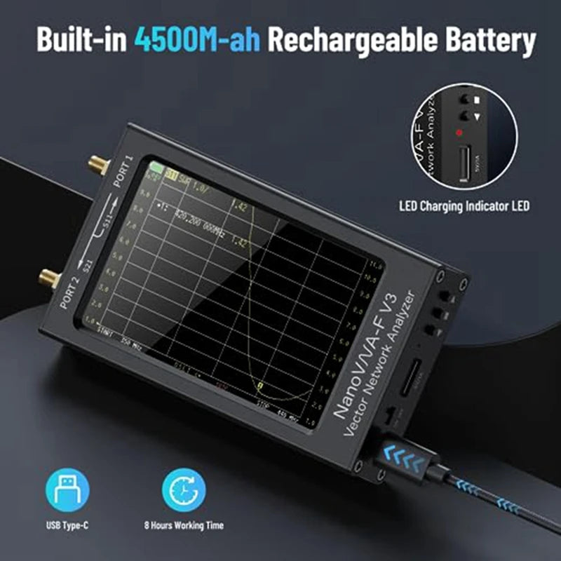 Esta herramienta de medición del analizador nano-VNA está hecha de material metálico, duradero y puede proteger eficazmente las interferencias electromagnéticas. Diseñado con conector SMA, se puede conectar directamente al DUT. Además, admite el control del software de PC y es compatible con NanoVNA-Saver para facilitar la transmisión de datos de medición. Batería recargable incorporada de 4500ma-ah con cable de carga tipo C y luz indicadora de carga LED, se puede cargar completamente en 3 horas sin coque
