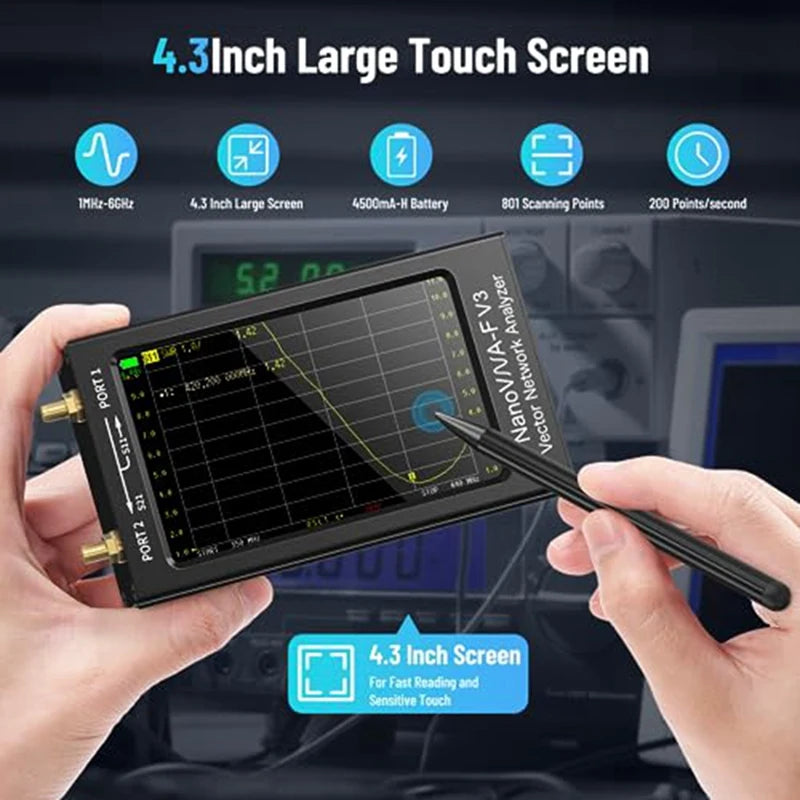 Nuevo analizador de red vectorial Nanovna-F V3 de 6Ghz actualizado, Analizador de antena HF VHF UHF VNA de 4,3 pulgadas, mide 801 puntos de escaneo