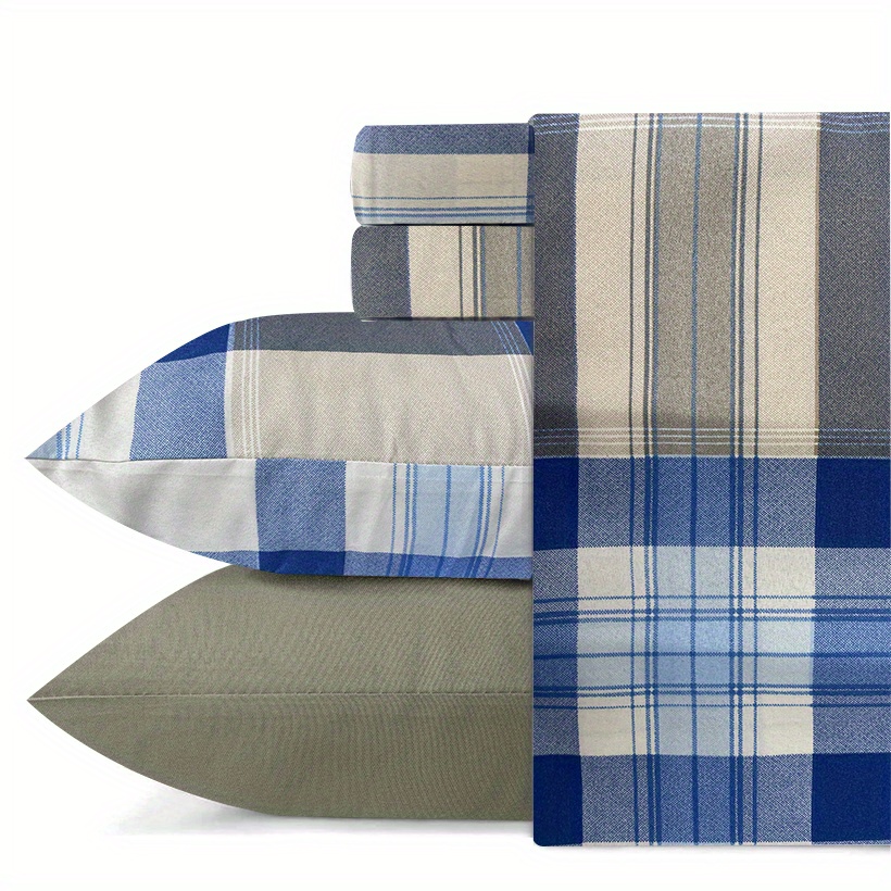 1 Printed Flat sheet, 1 Printed Fitted sheet, 2 Printed Pillowcases, and 2 Solid Pillowcases