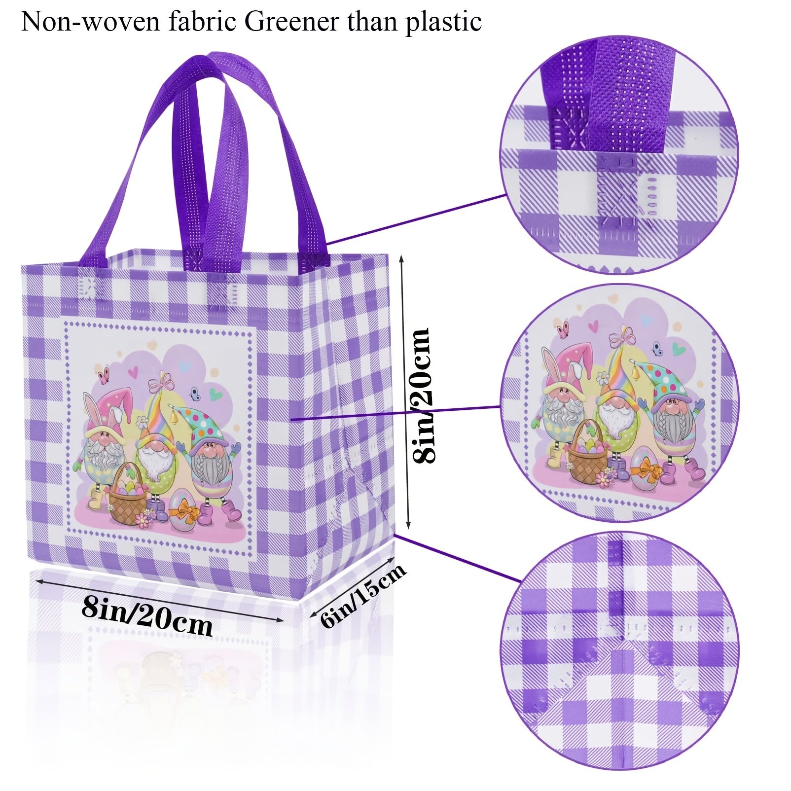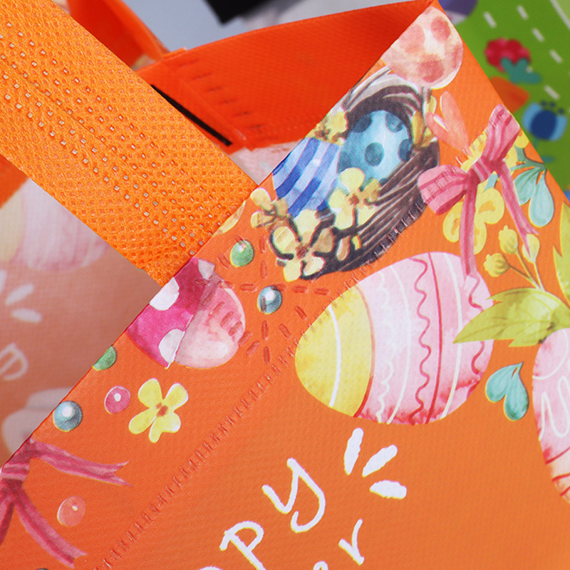 DECENT QUALITY MATERIAL: Made Of High-quality Non-woven Fabric. The Easter Egg Bags Are Sturdy And Durable Enough, And Can Be Used To Carry Gifts To Reduce The Risk Of Tearing. You Can Replace Your Smelly Plastic Bags With These Super Stylish Tote Bags.