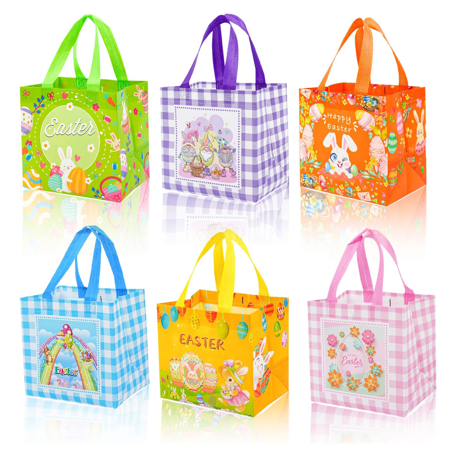 VARIOUS EYE-CATCHING PATTERNS: Our Easter Party Bags Come With 6 Different Original Easter Patterns , Such As Bunny, Carrot, Chick, Egg Etc. Vibrant Colors And Easter Themed Patterns Make Them Eye-catching, Very Suitable For Egg Hunt Games , Gift Bags And Egg Containers, Exquisite Enough To Make Gift Bags That Little Girls And Boys Like, Or Beautiful Decorations For Some Easter Themed Parties.