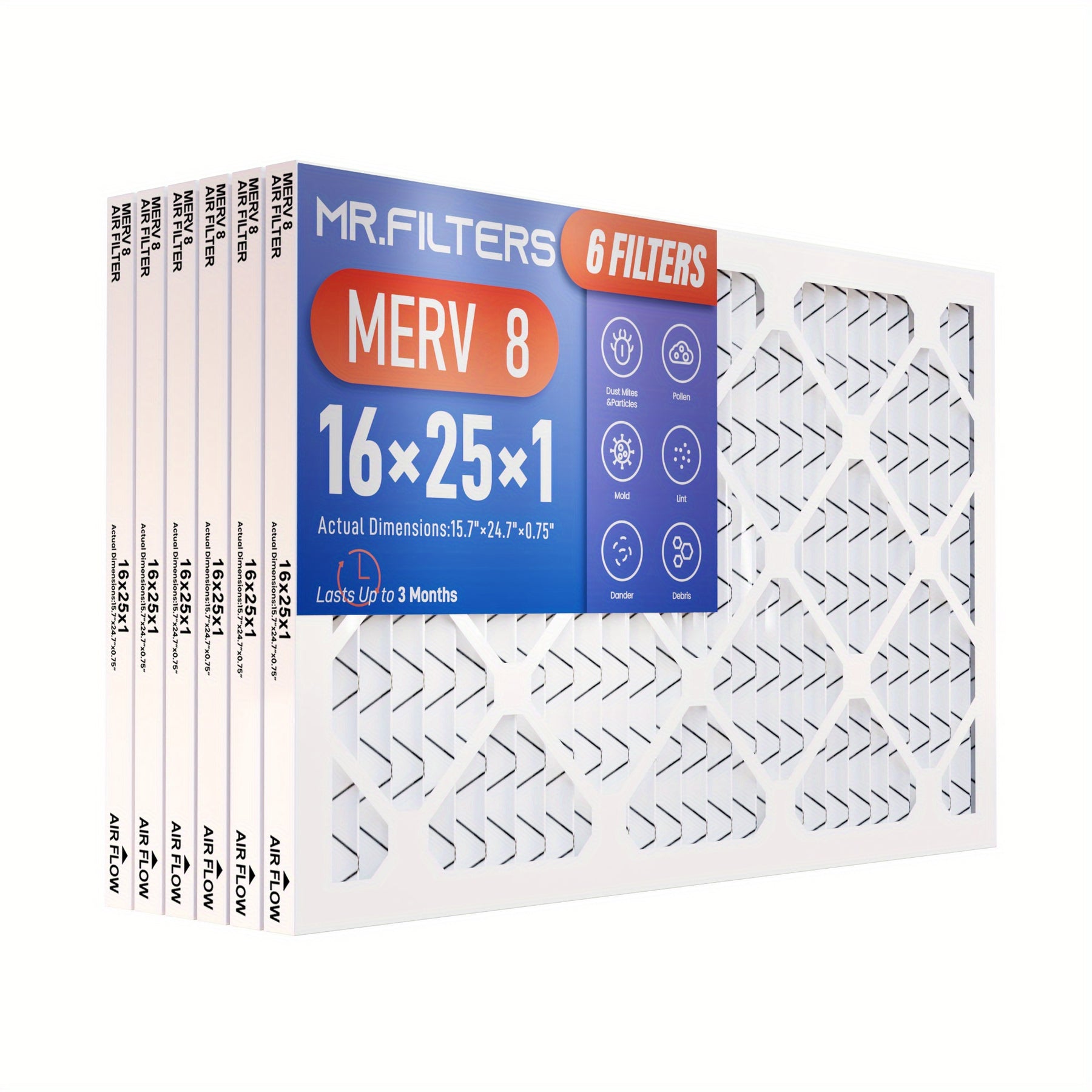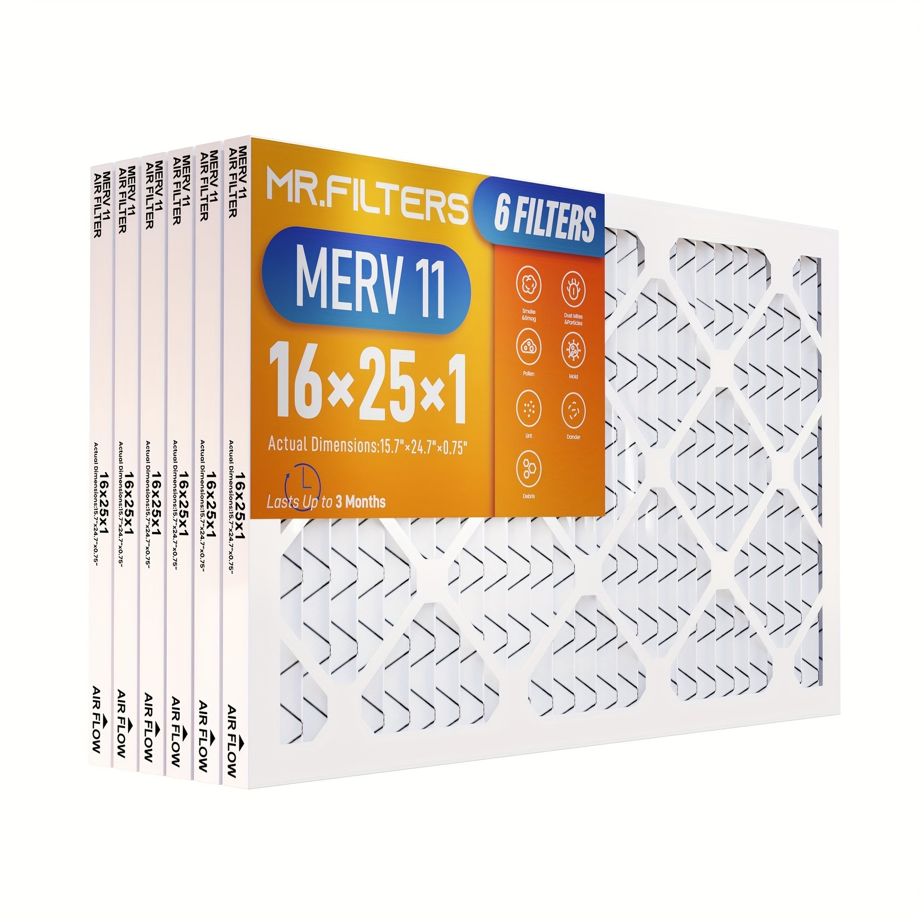 6pcs/set 16x25x1 Inch MERV 8/11/13 Cardboard Frame Pleated AC Furnace HVAC Air Filter