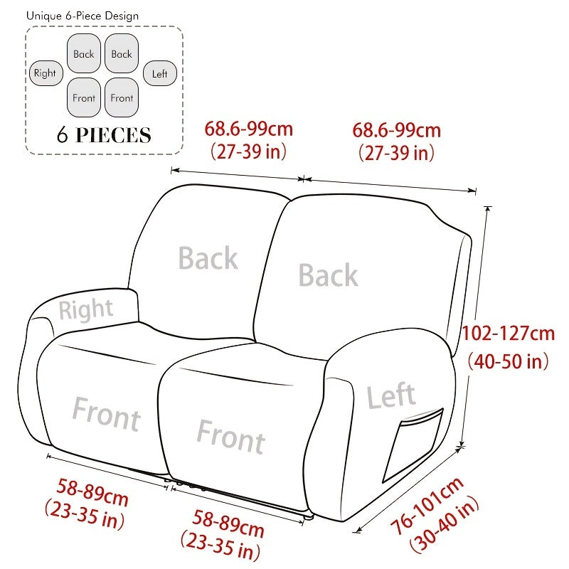 6pcs/set Recliner Loveseat Slipcover With Pockets 2 Seat Recliner Sofa Covers Lazy Boy Chair Cover Fallon Collection Slipcover For Recliner With Elastic Bottom