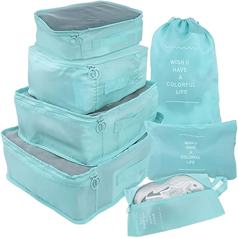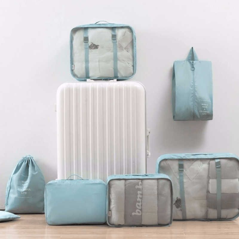 Featuring a seven-piece set, our travel pouch organizers are perfect for classifying and storing your clothes and accessories. Our high-quality fabric guarantees that there will be no unpleasant odors or scents. The fresh, clean design will keep your belongings in pristine condition during your journeys.