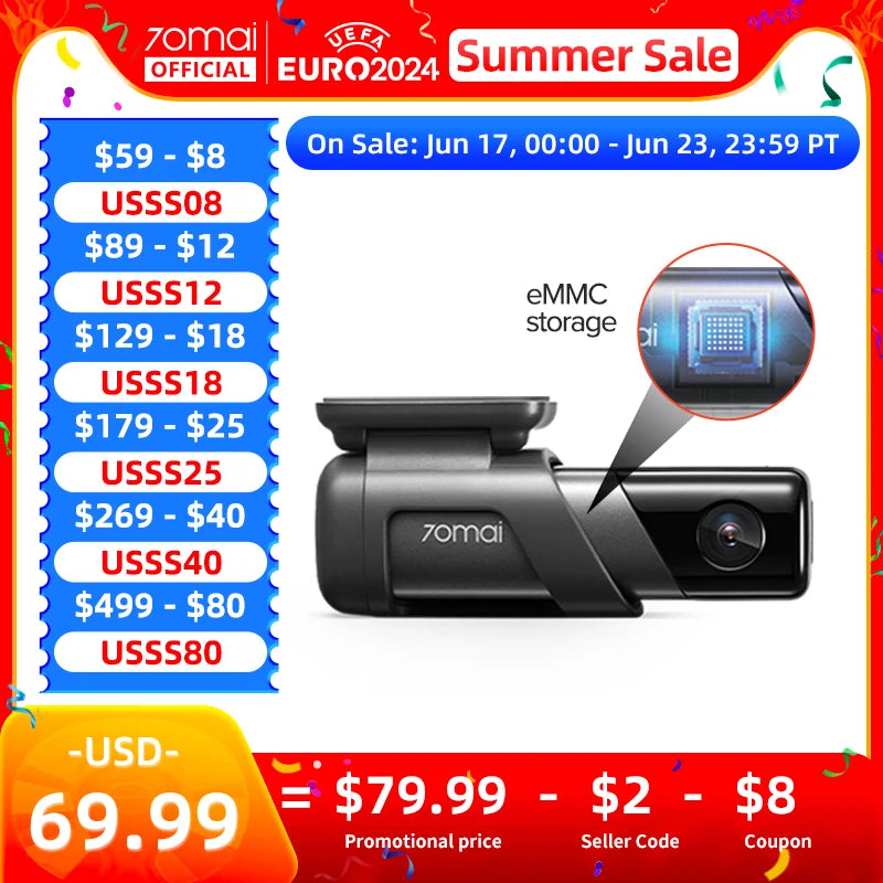 70mai Dash Cam M500 1944P 170FOV 70mai Car DVR Camera Recorder Built-in GPS ADAS 24H Parking Monitor eMMC built-in Storage