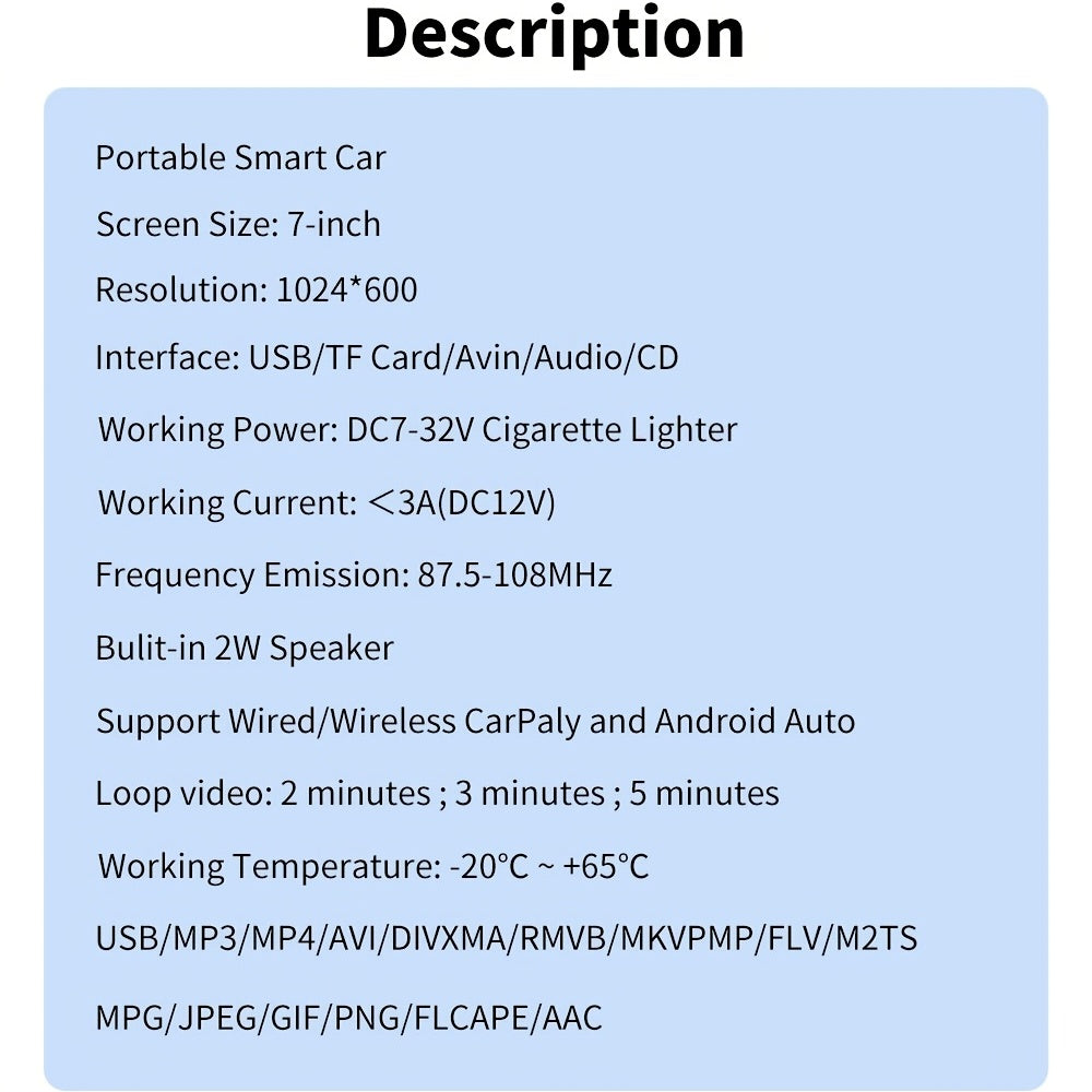 7inch Car Monitor Wireless Apply Carplay Android Auto Car Multimedia Video Player Touch Screen Support Rear Camera FM AUX
