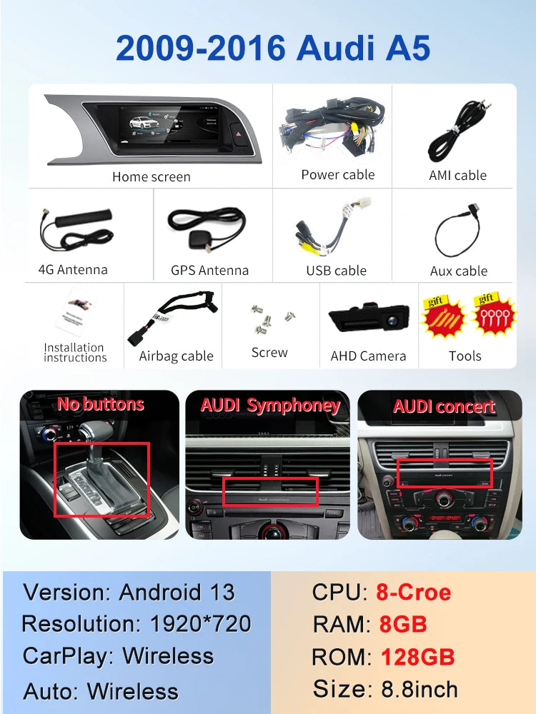 Support IOS⩓roid wireless carplay ,Andiord AUTO ,Perfect interaction between mobile phone and new screen.