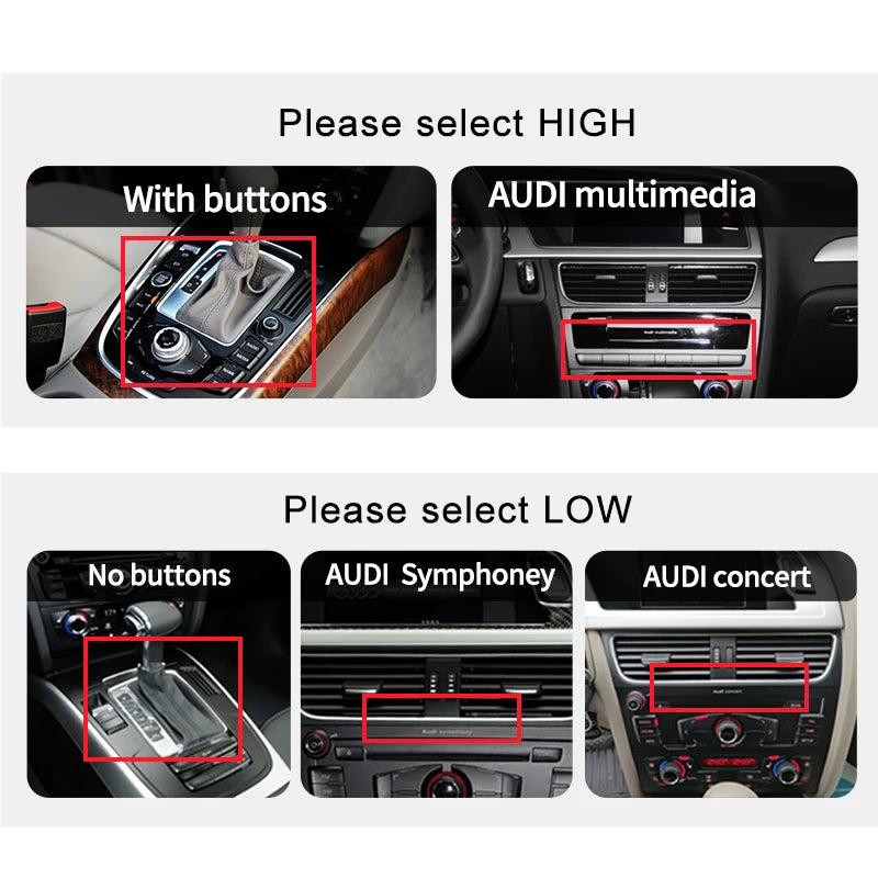 if your car radio name is AUDI Multimedia, please choose HIGH model,