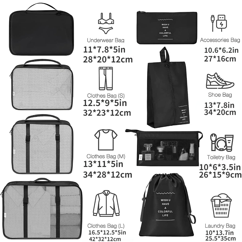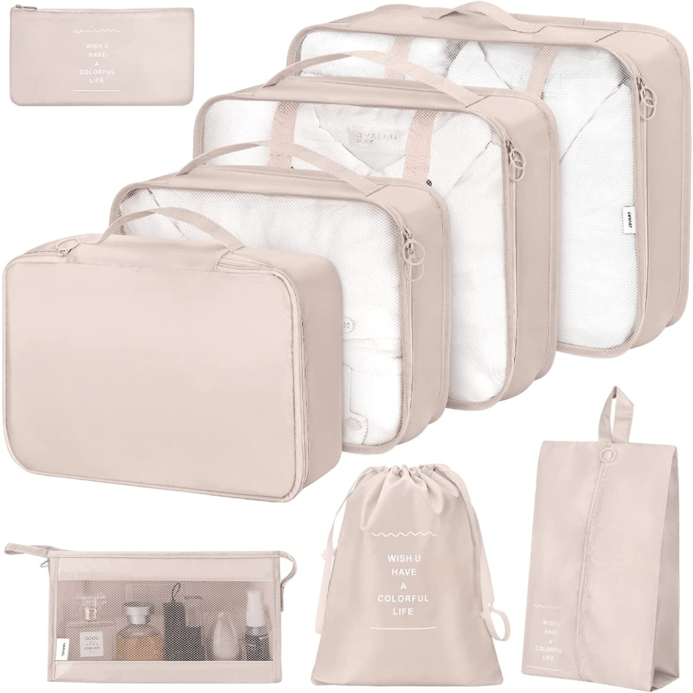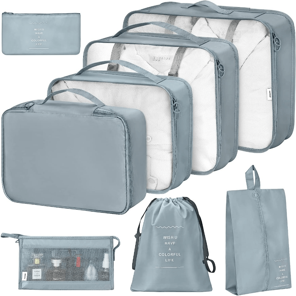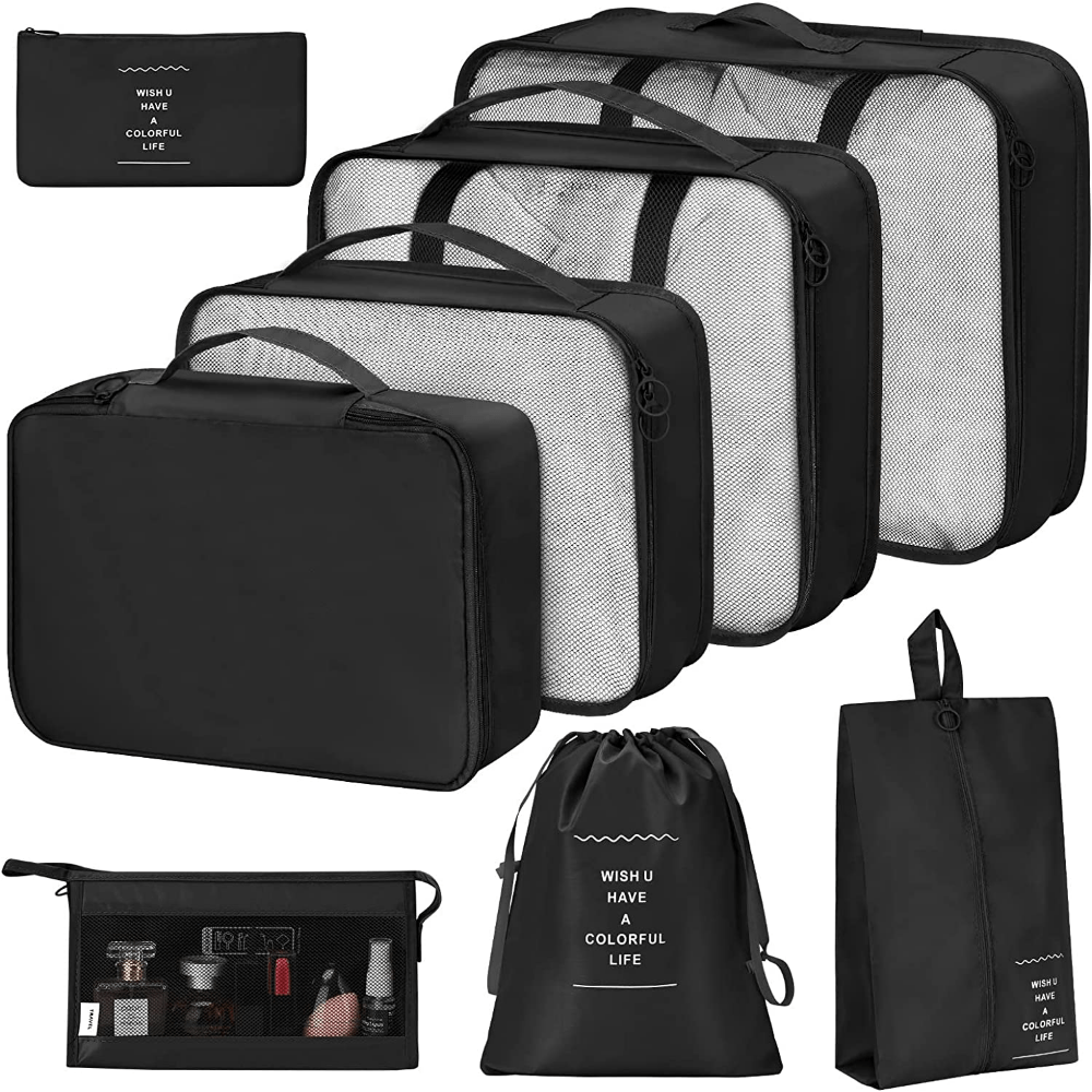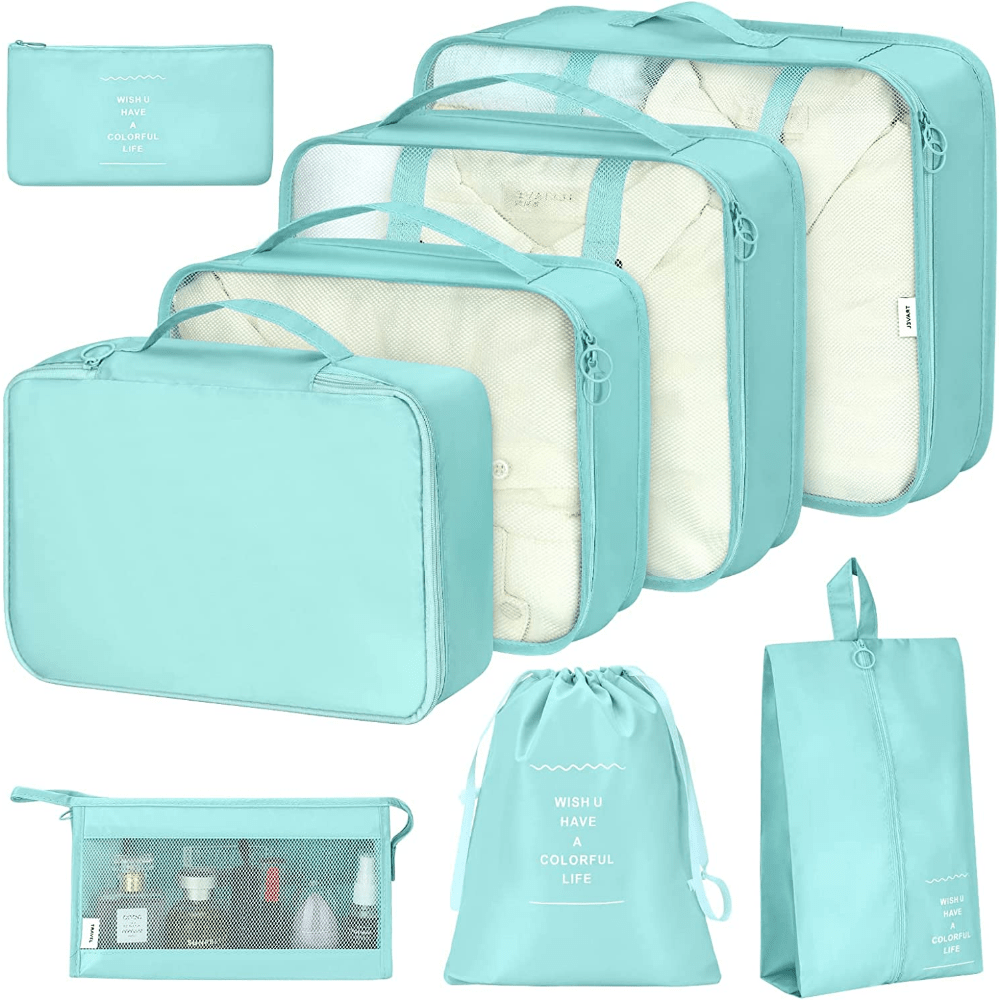 【8 Piece Compression Packing Cubes】Our suitcase organizer bags set come in various sizes to accommodate all your essentials, from clothes and shoes to cosmetics and electronics. The travel bags organizer for luggage make anything organized