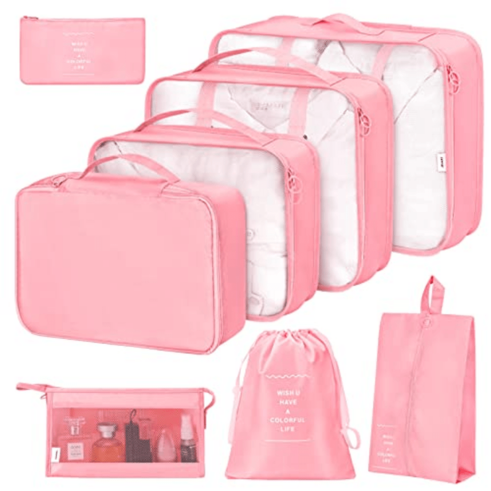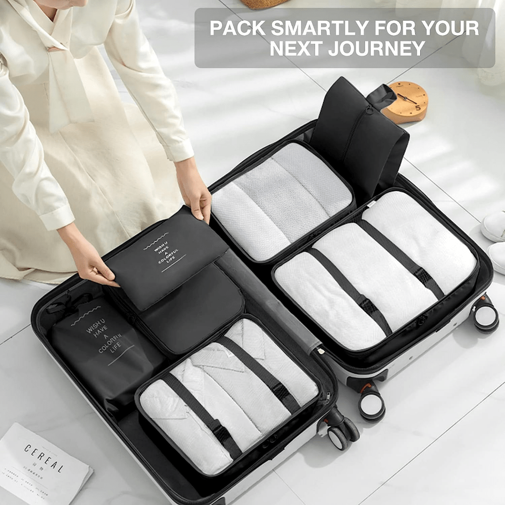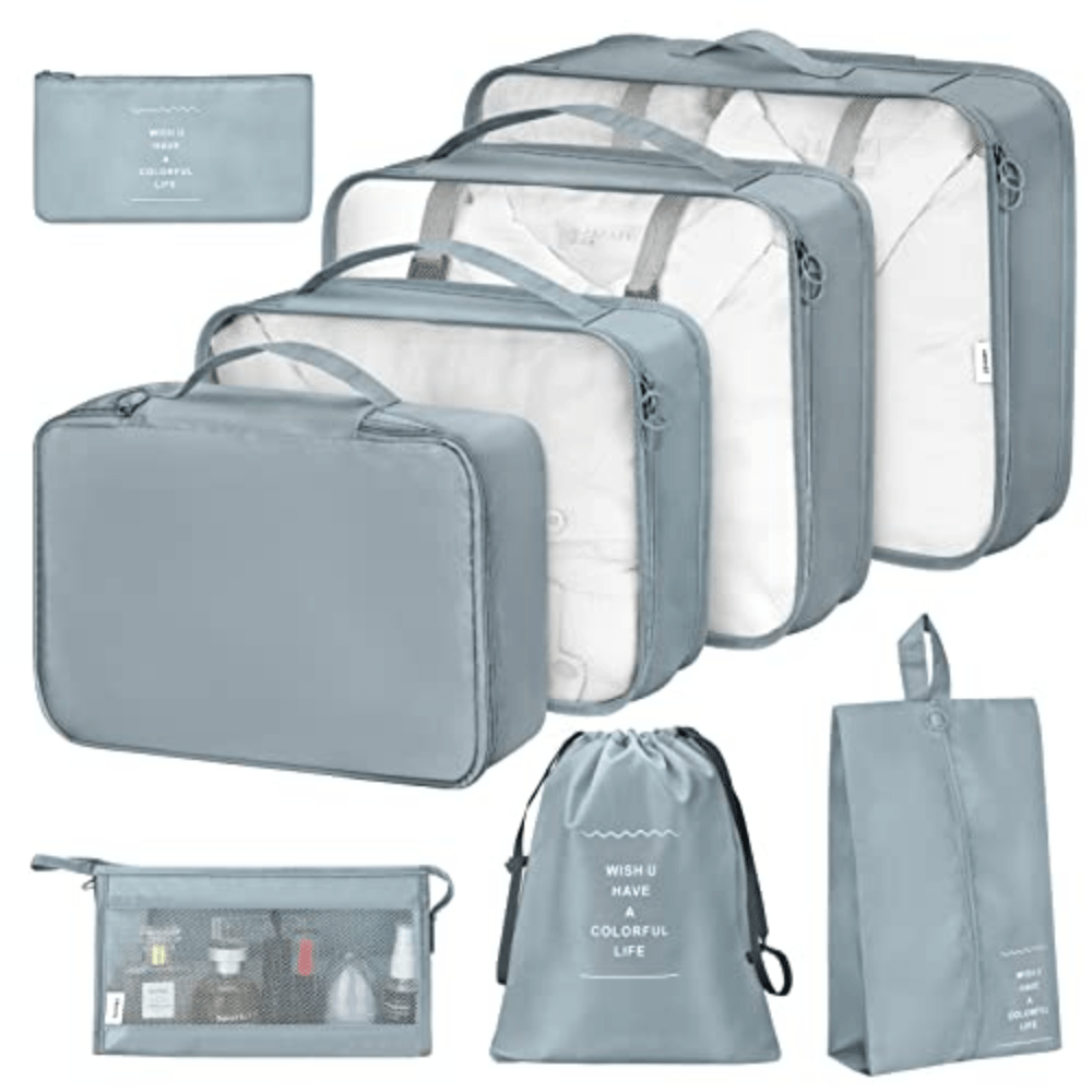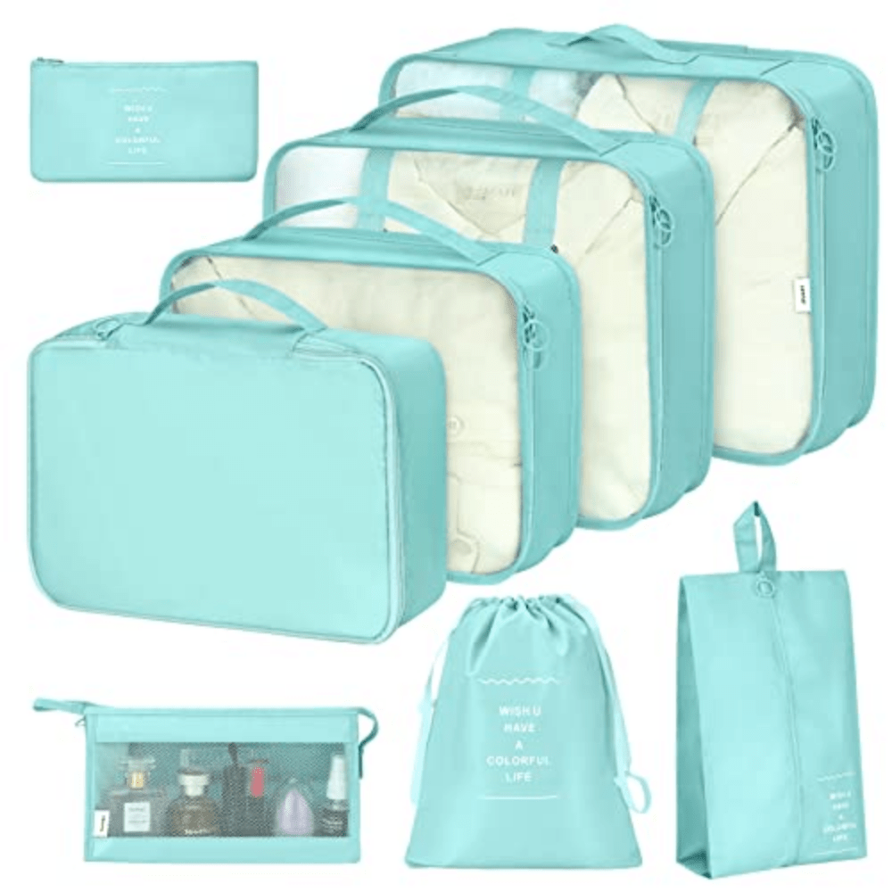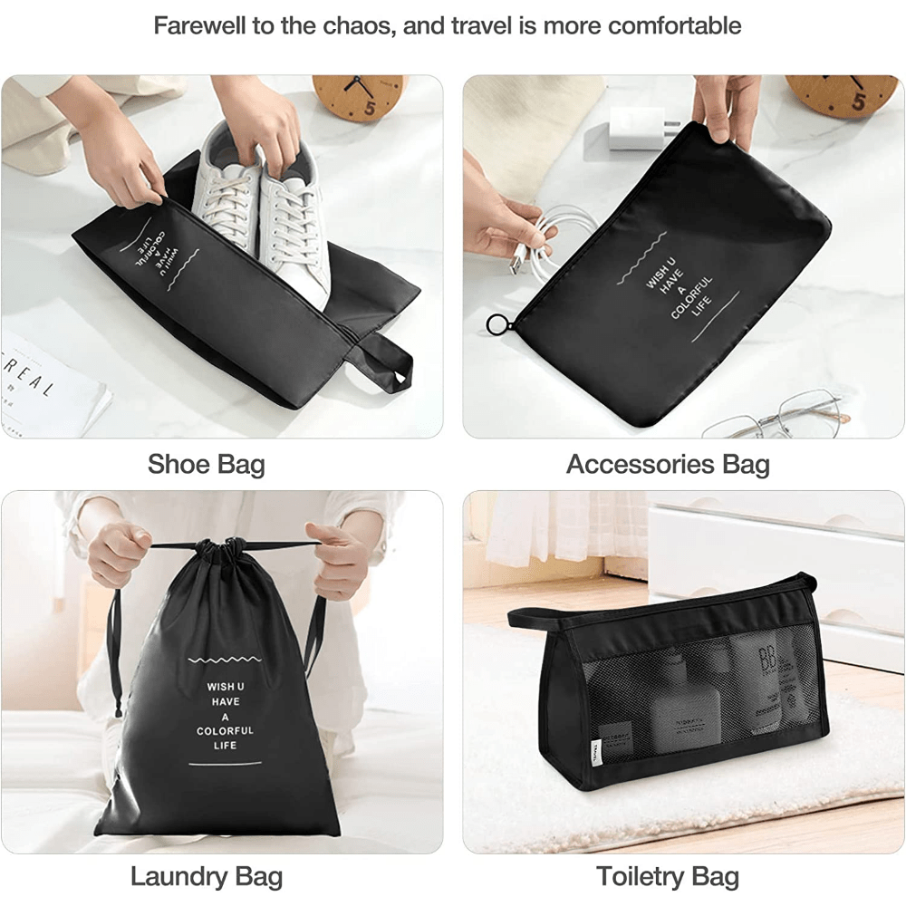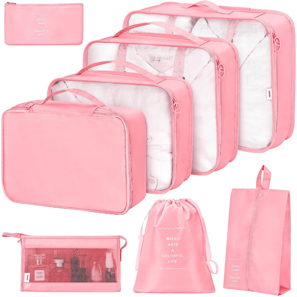 【8 Piece Compression Packing Cubes】Our suitcase organizer bags set come in various sizes to accommodate all your essentials, from clothes and shoes to cosmetics and electronics. The travel bags organizer for luggage make anything organized
